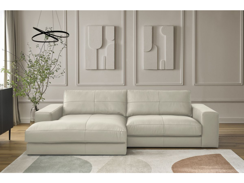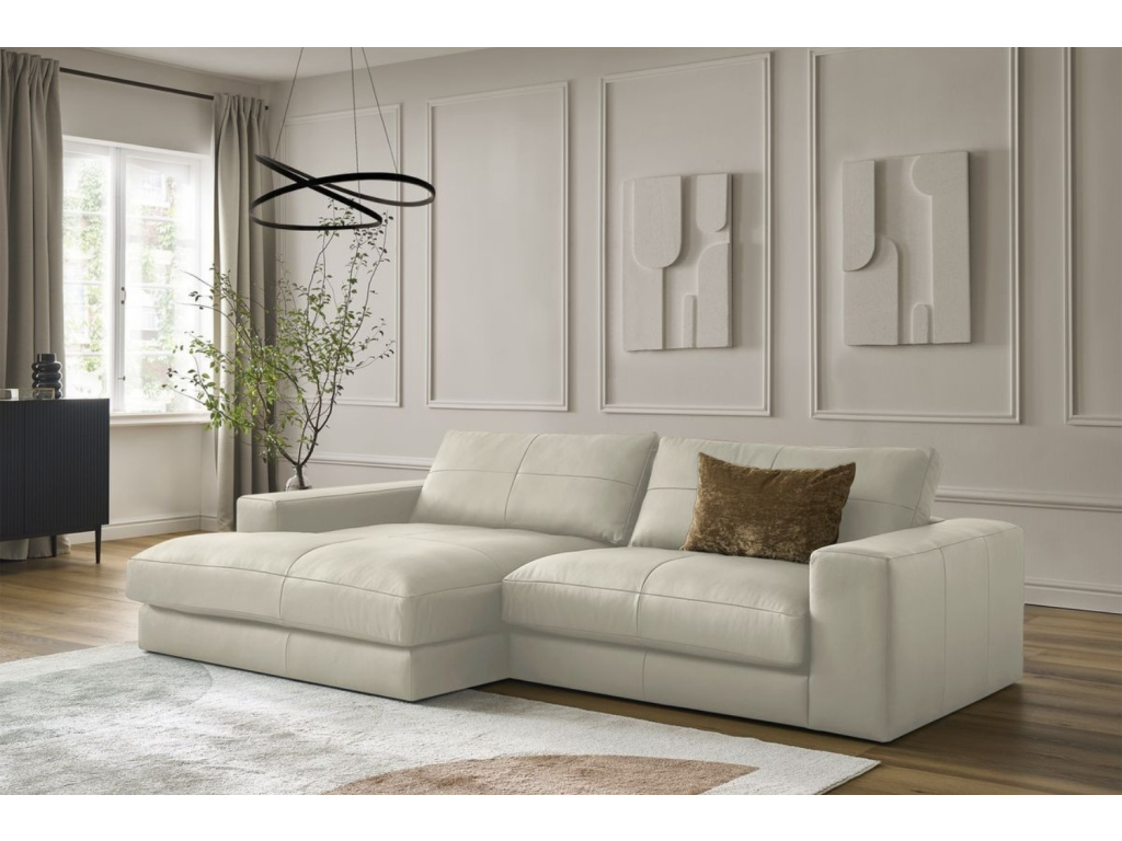 NakupovatBéžová kožená rohová pohovka Leonard 274 cm, levá