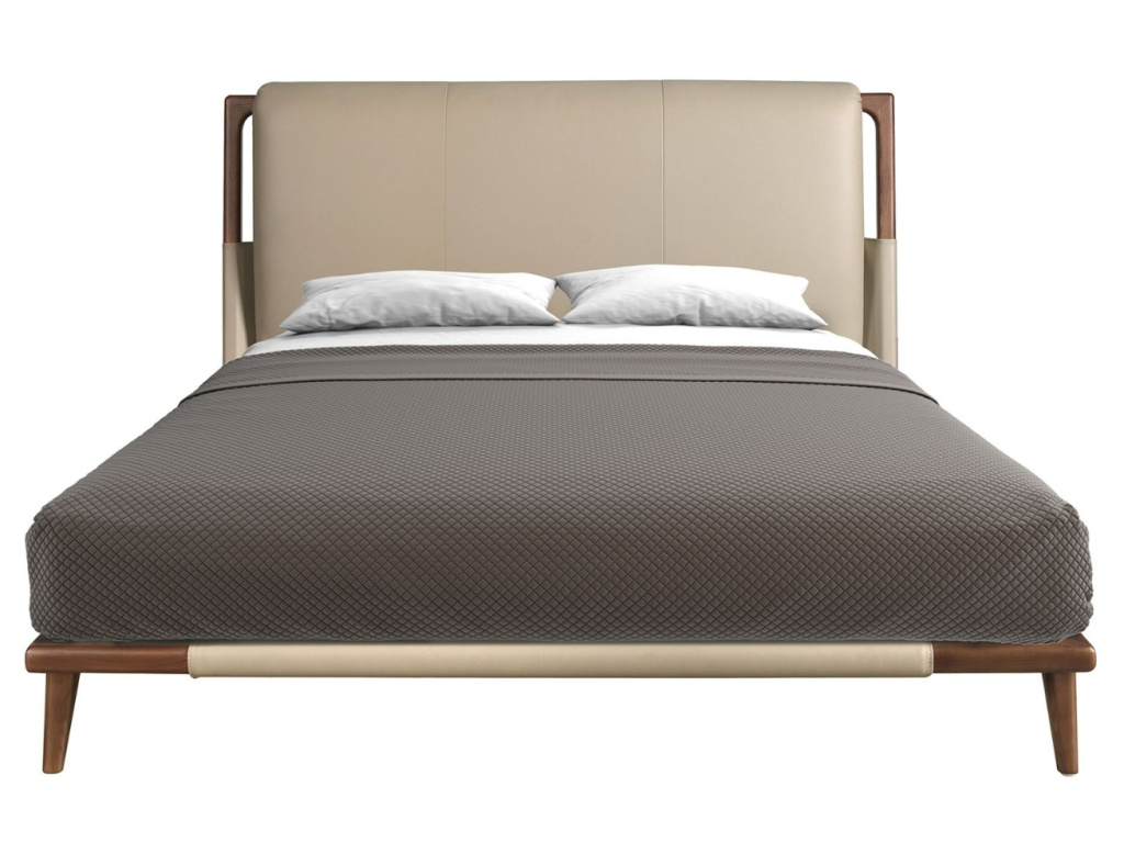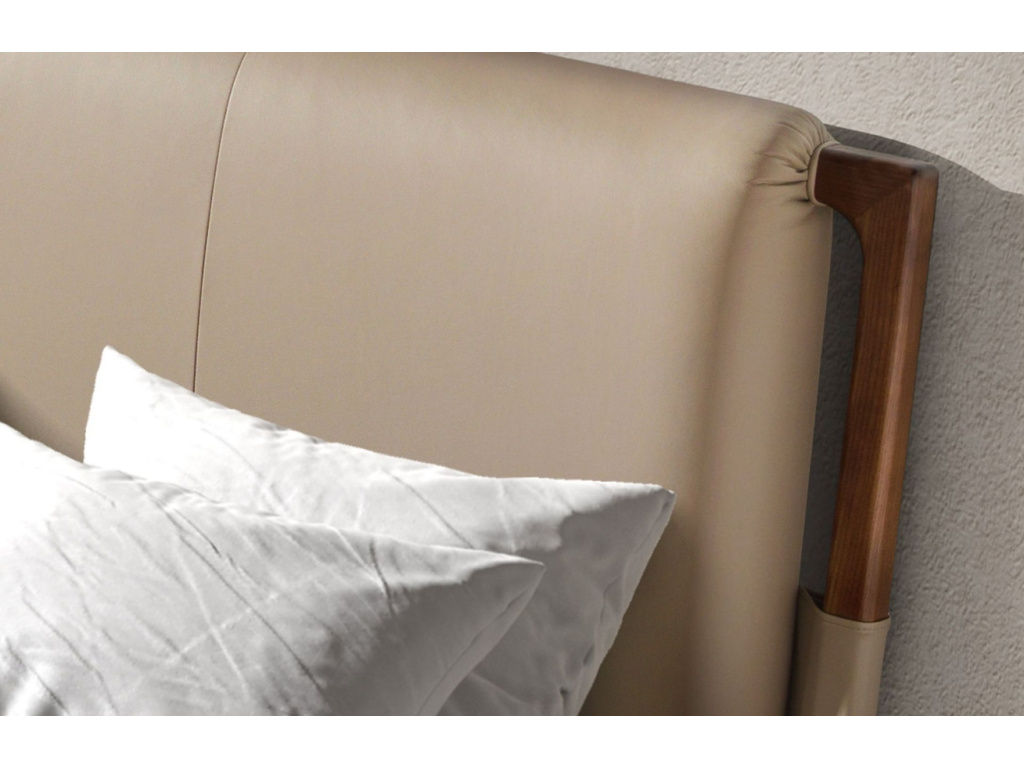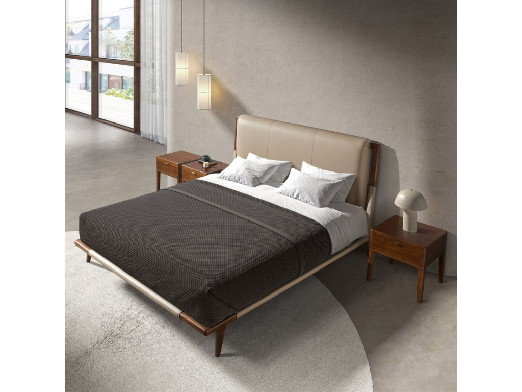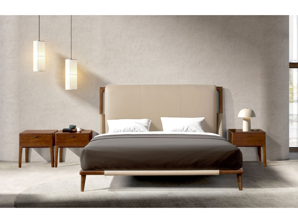 Dvoulůžková postel s čelem čalouněným béžovou koženkou a dřevěnou konstrukcí v ořechovém dekoru je nadčasovým kouskem, který do vaší ložnice vnese eleganci, osobitý styl a hlavně pohodlí. Designové čelo s vertikálními švy působí luxusně, aniž by bylo přehnané, a měkče navazuje na přirozenou kresbu dřevěných nohou. Součástí je pohodlný dřevěný rošt čalouněný hnědou protiskluzovou látkou – postel je kompatibilní s matrací o velikosti 180 × 200 cm. Tato postel je ideální volbou pro ty, kteří hledají funkční design s nadčasovou elegancí. V kombinaci s dalším nábytkem v barvě ořechu vynikne ještě více a stane se přirozeným středobodem vaší ložnice!