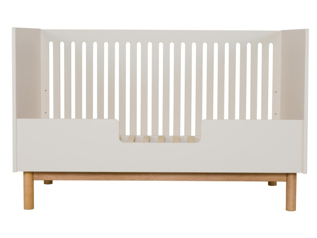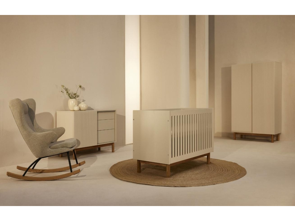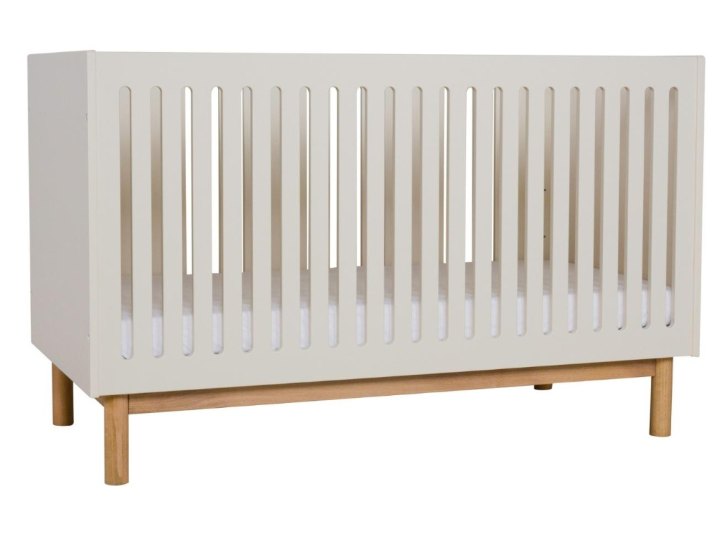 Moderní postýlka Quax Mood je nedílnou součástí dětského pokojíčku. Přírodní buková podnož a béžové lakované dřevo je elegantní a minimalistická kombinace, která působí jemným vzdušným dojmem. Postýlku lze nastavit ve třech úrovních výšky, díky čemuž si postýlku přizpůsobíte dle vašich potřeb a stáří miminka. Velkou výhodou je možnost sundání přední strany postýlky a vytvořit tak starším dětem pohodlné místečko, kam se bez pomoci snadno dostanou. Pro vyladěný interiér doporučujeme kombinovat s dalšími prvky z řady Quax Mood.