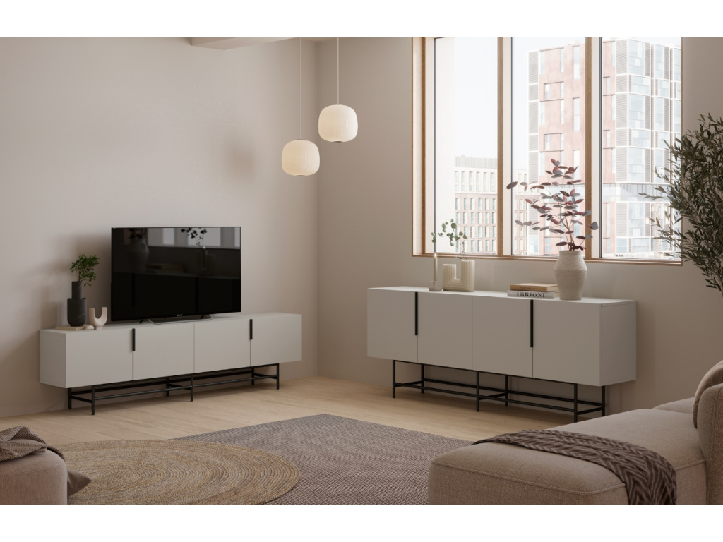 Komoda Eldia od značky Marckeric oslní minimalistickým designem v elegantním krémovém odstínu, který doplňuje černá kovová podnož a subtilní černé úchytky. Nábytek je vyroben z odolné MDF desky, díky čemuž si zachovává pevnost a dlouhou životnost. Skvěle zapadne do industriálních nebo skandinávských interiérů, kde vynikne svou decentní barevností a lehkostí provedení. Kolekce Eldia nabízí více barevných variant a více kousků nábytku ke sladění – nízkou komodu, vysokou komodu a TV stolek.