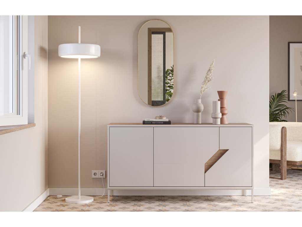 Komoda Lilou od značky Marckeric zaujme moderním vzhledem s čistými liniemi a originálním geometrickým detailem. Kombinace světlého dřevěného dekoru, hladkých béžových ploch a subtilní kovové podnože působí lehce a nadčasově. Prakticky členěný úložný prostor nabízí skryté oddíly, díky kterým snadno udržíte pořádek a elegantně uschováte vše od knih po dekorace. Kolekce Lilou zahrnuje také další komody, TV stolek a skříňku, takže si můžete sladit celý interiér v jednotném stylu. Skvěle se hodí do obývacího pokoje, ložnice i pracovny a perfektně doplní moderní, minimalistické nebo skandinávské interiéry.