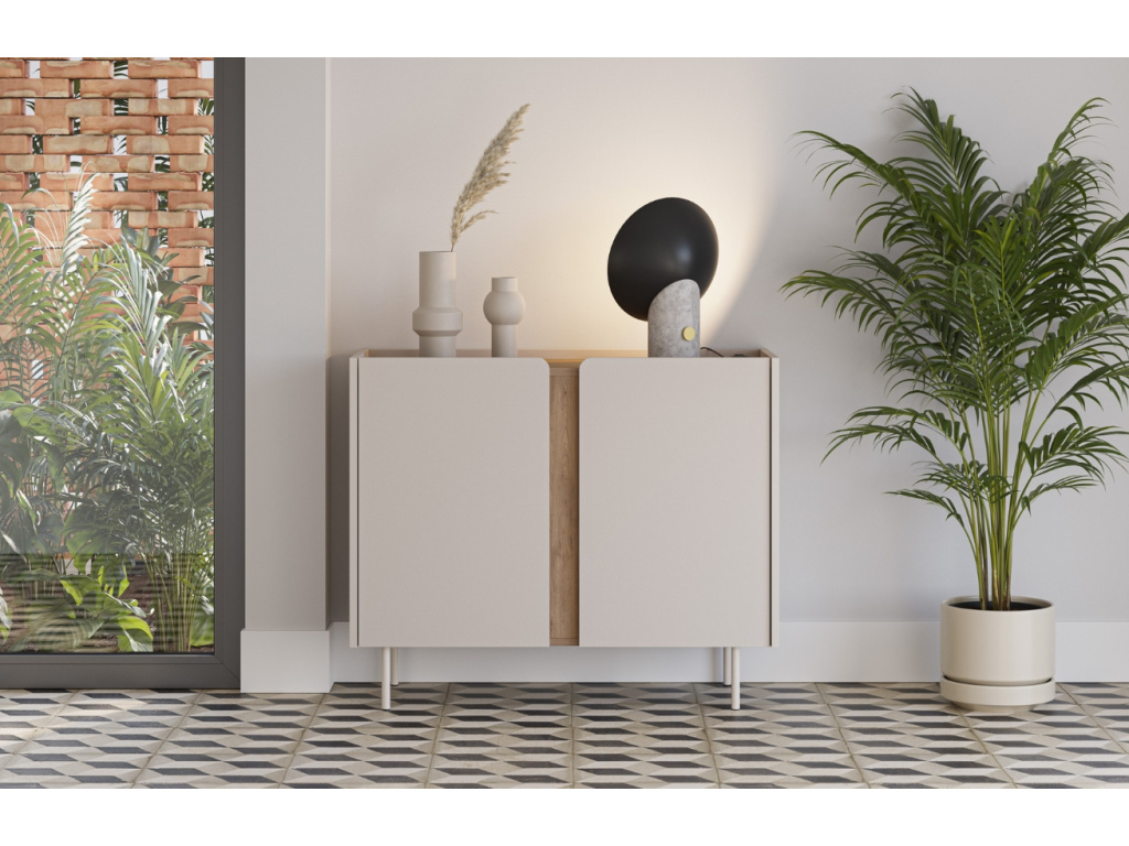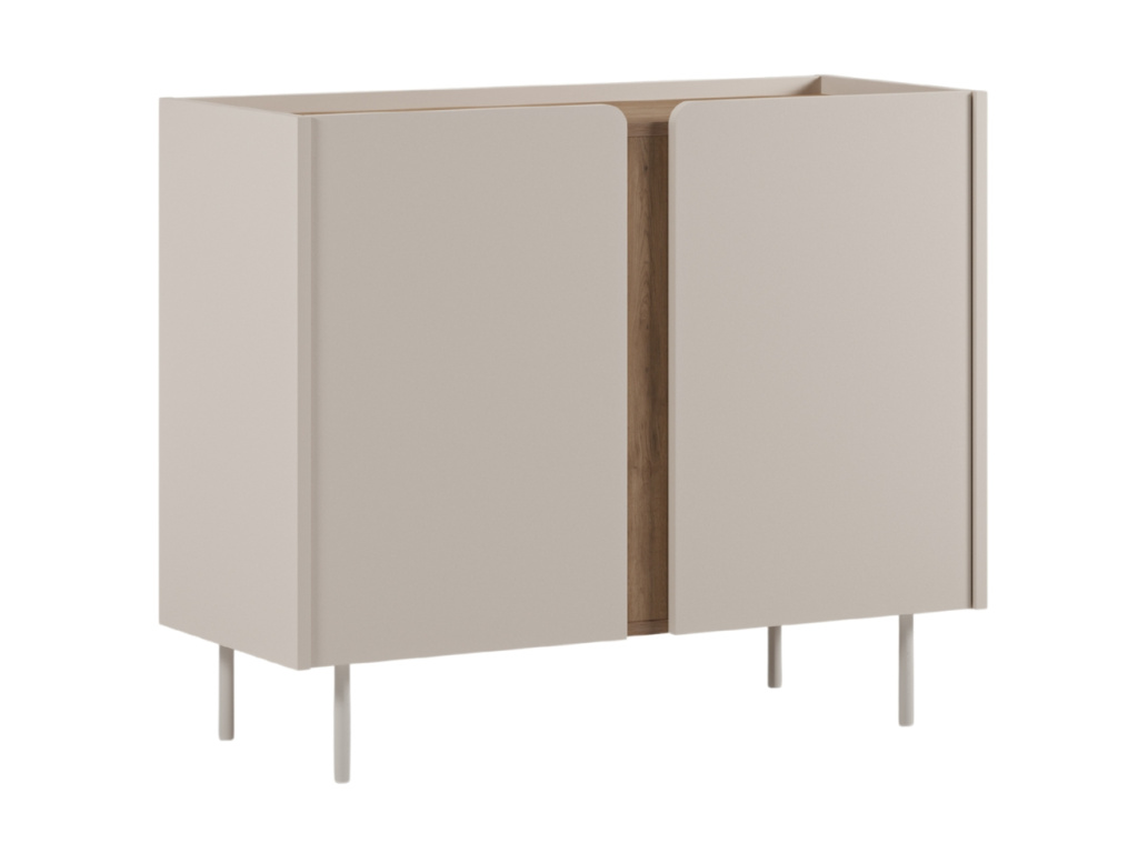 Komoda Lucile od značky Marckeric zaujme čistými liniemi, jemným béžovým odstínem a kombinací matné povrchové úpravy s přírodním dekorem dřeva. Vyrobená je z odolné dřevovláknité desky MDF, přičemž prakticky vyvýšené okraje horní desky chrání vystavené dekorace před pádem – ideální volba do domácností s malými dětmi nebo domácími mazlíčky. Svým nadčasovým vzhledem zapadne do moderních, skandinávských i minimalistických interiérů. Kolekce Lucile nabízí také další tři velikosti komod, TV stolek a noční stolek.