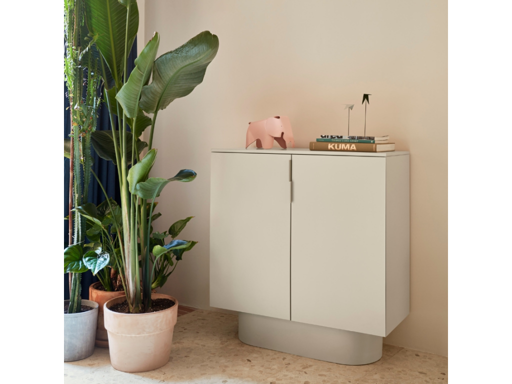 Hledáte elegantní minimalistické řešení úložných prostor? Série Totem od značky Teulat bude skvělou volbou! Najdete v ní komody, TV stolek i noční stolek – vše vzniklo v designovém studiu PerezOchando a každý z kousků si můžete pořídit v béžovém i antracitovém zbarvení. Vyšší komoda o šířce 110 cm přinese do interiéru úložný prostor v podobě 6 polic ukrytých za dvojicí dvířek, která disponují systémem zavírání soft close – ať už komodu využijete na oblečení, nádobí nebo cokoliv jiného, vše bude spolehlivě ukryto před zraky vašich návštěv. Použité lakované MDF navíc potěší snadnou údržbou a vysokou odolností. Vpusťte tuto stylovou sérii do vašeho moderního minimalistického interiéru, zaujme především zajímavě řešenou podnoží, která má podobu vyvýšeného centrálního podstavce.
