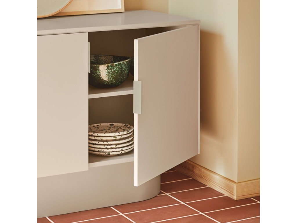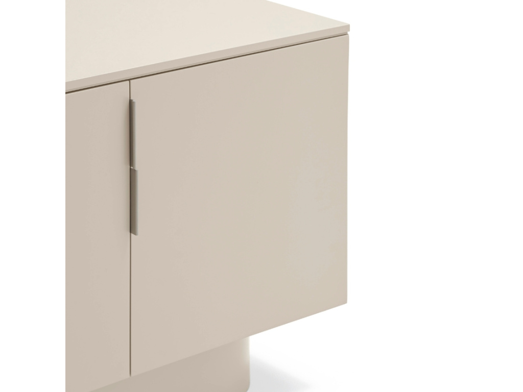 Hledáte elegantní minimalistické řešení úložných prostor? Série Totem od značky Teulat bude skvělou volbou! Najdete v ní komody, TV stolek i noční stolek – vše vzniklo v designovém studiu PerezOchando a každý z kousků si můžete pořídit v béžovém i antracitovém zbarvení. Prostorná komoda o šířce 200 cm přinese do interiéru úložný prostor v podobě 6 polic a 3 zásuvek. Vše je ukryté za čtveřicí dvířek, která disponují systémem zavírání soft close – ať už komodu využijete na oblečení, nádobí nebo cokoliv jiného, vše bude spolehlivě ukryto před zraky vašich návštěv. Použité lakované MDF navíc potěší snadnou údržbou a vysokou odolností. Vpusťte tuto stylovou sérii do vašeho moderního minimalistického interiéru, zaujme především zajímavě řešenou podnoží, která má podobu vyvýšeného centrálního podstavce.