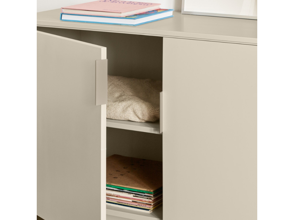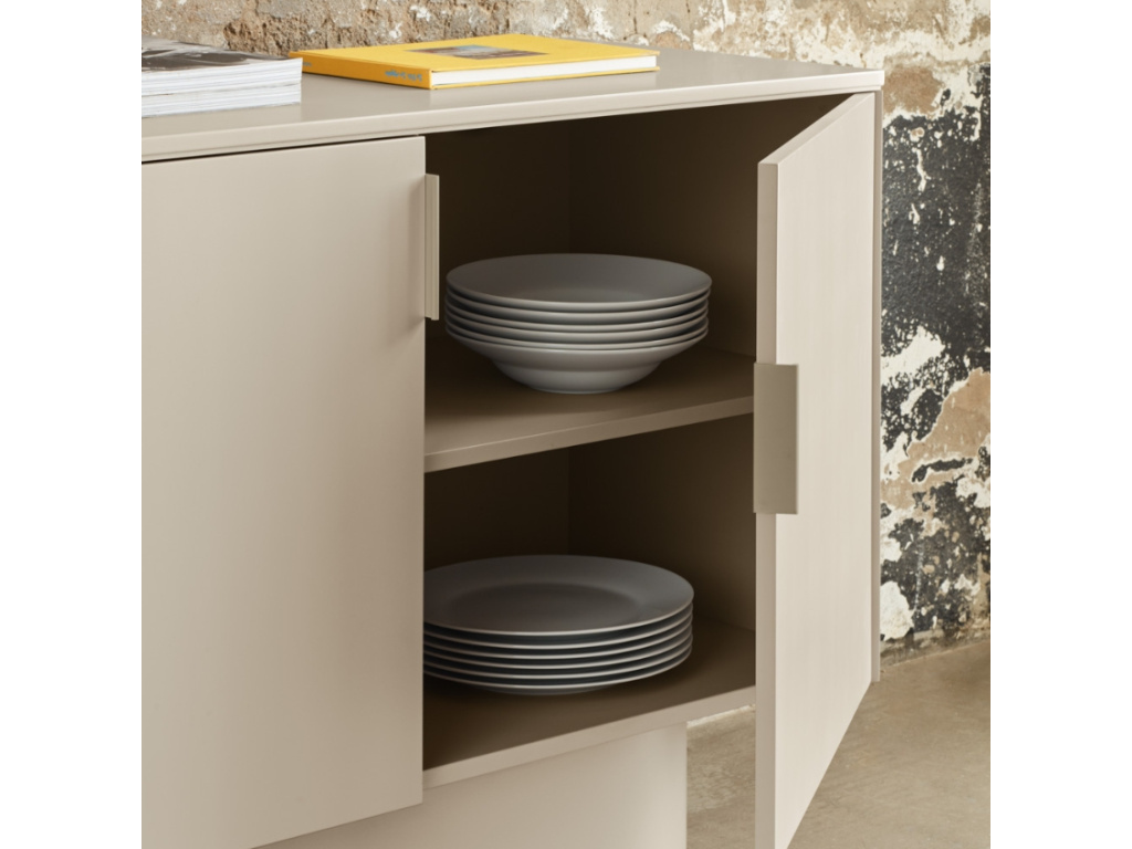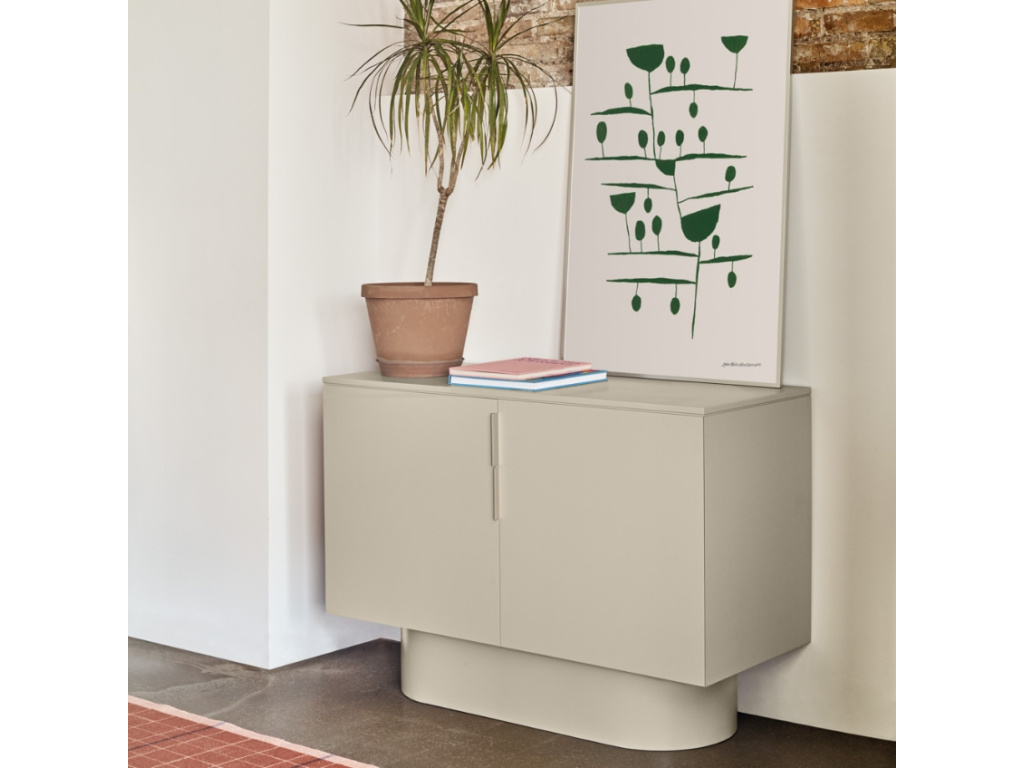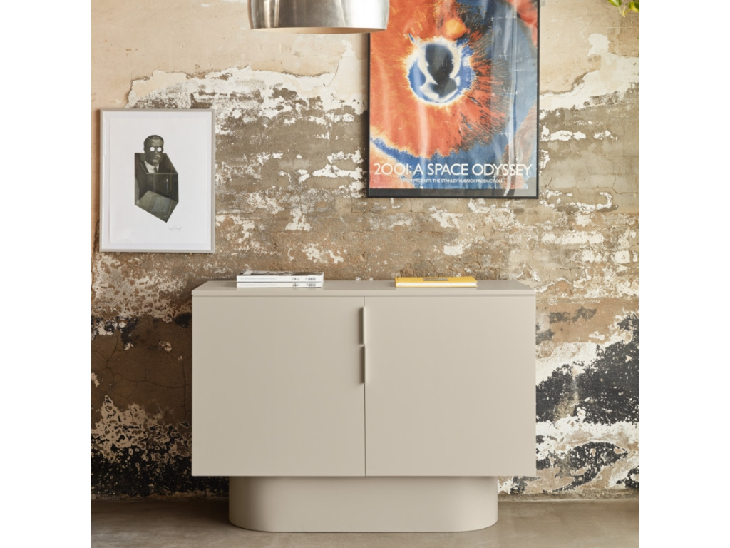 Hledáte elegantní minimalistické řešení úložných prostor? Série Totem od značky Teulat bude skvělou volbou! Najdete v ní komody, TV stolek i noční stolek – vše vzniklo v designovém studiu PerezOchando a každý z kousků si můžete pořídit v béžovém i antracitovém zbarvení. Nižší komoda o šířce 110 cm přinese do interiéru úložný prostor v podobě 4 polic ukrytých za dvojicí dvířek, která disponují systémem zavírání soft close – ať už komodu využijete na oblečení, nádobí nebo cokoliv jiného, vše bude spolehlivě ukryto před zraky vašich návštěv. Použité lakované MDF navíc potěší snadnou údržbou a vysokou odolností. Vpusťte tuto stylovou sérii do vašeho moderního minimalistického interiéru, zaujme především zajímavě řešenou podnoží, která má podobu vyvýšeného centrálního podstavce.