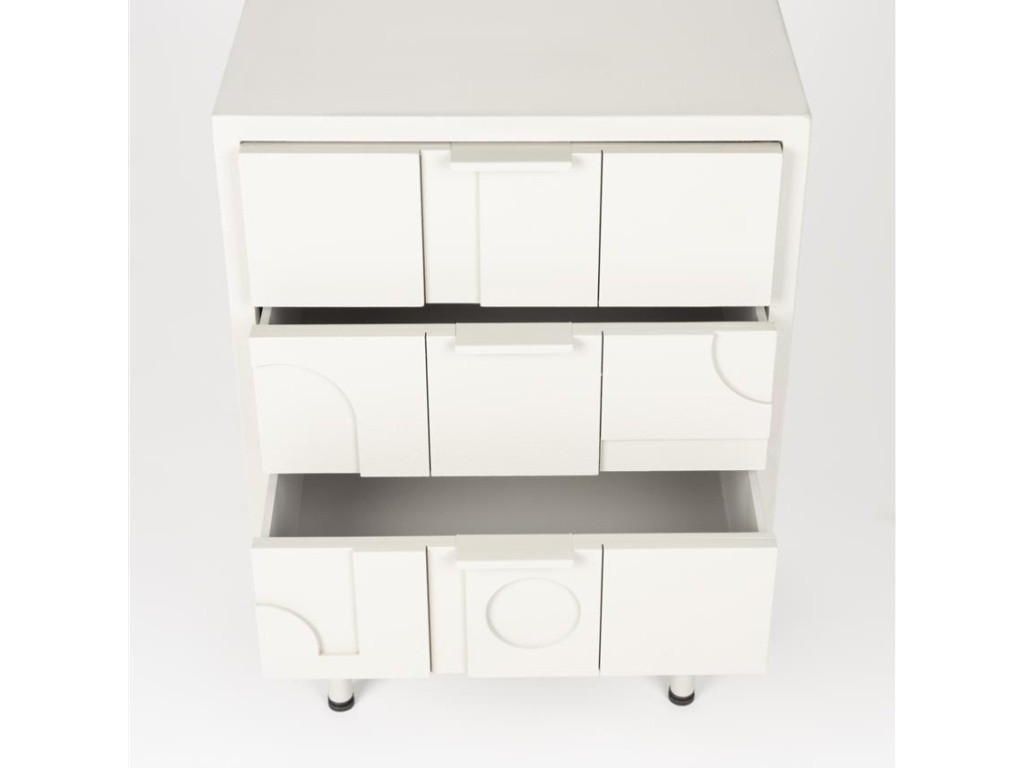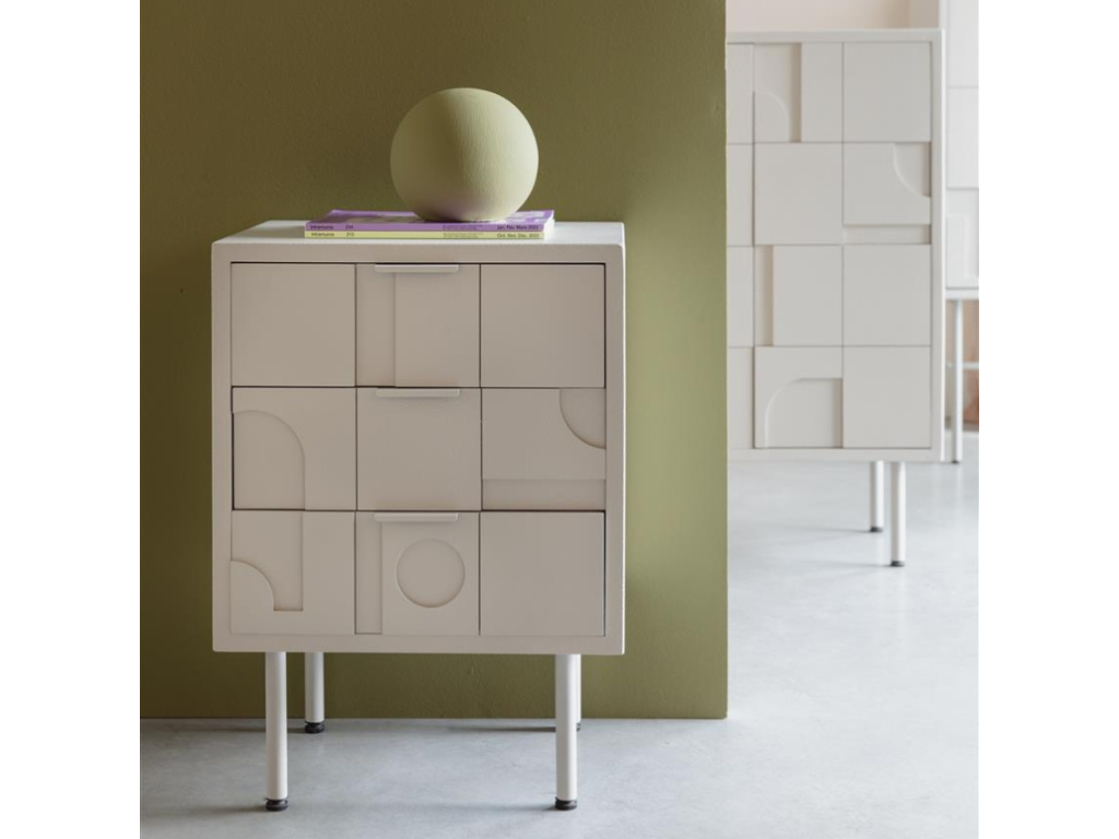 Komoda FUNK v béžové barvě se stane jedinečným designovým prvkem, který zaujme každého, kdo do interiéru vkročí. Komoda z MDF materiálu s podnoží z lakovaného kovu se hodí především do moderních, ale i například do vintage interiérů. Komoda disponuje praktickými třemi zásuvkami a poslouží vám k odložení rozečtené knihy, šálku s kávou nebo na ni můžete vystavit vázu s květinami. FUNK je výrazný a originální kus nábytku, který můžete umístit například do předsíně, obývacího pokoje nebo ložnice.