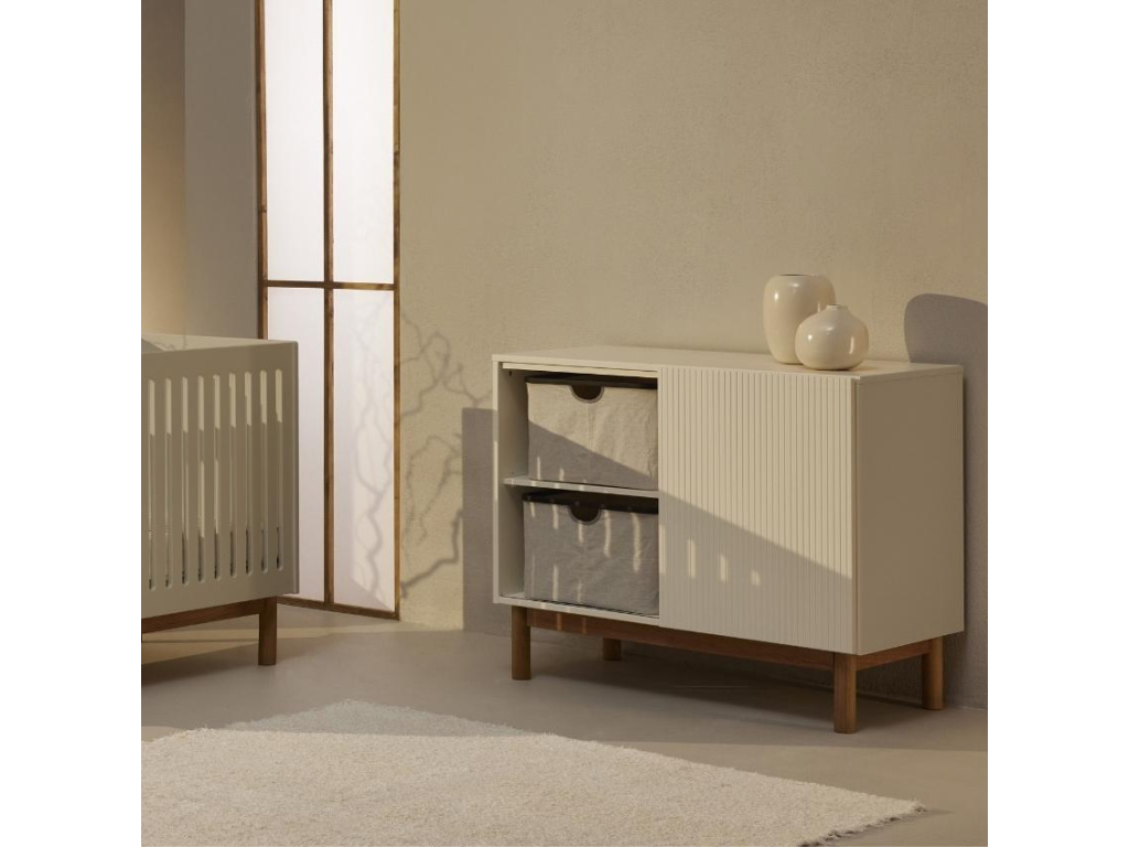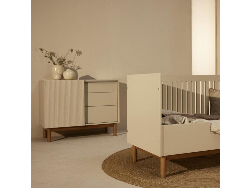 Elegantní jednoduchá komoda Quax Mood je designovým kouskem do vašeho dětské pokojíčku. Komoda disponuje velkým úložným prostorem, třemi zásuvkami různých velikostí, kam se vejde všechno dětské prádlo. Potřeby na přebalování pohodlně uložíte do skříňky s posuvnými dvířky. Komodu je možné doplnit o přebalovací pult Quax Mood, který snadno sundáte když už ho není třeba.
