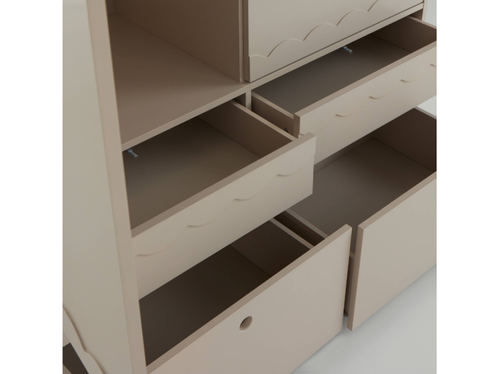 Hledáte stylové a funkční řešení pro úložný prostor v dětském pokoji? Šatní skříň MERRILL MINI je perfektní volbou pro rodiče, kteří chtějí kombinovat krásný design s praktičností. Tato kompaktní, ale prostorná skříň je vyrobena z kvalitního MDF a nabízí čtyři hluboké zásuvky, které pomohou udržet oblečení, hračky i další drobnosti pečlivě uspořádané. Díky svému nadčasovému vzhledu v béžové nebo zelené barvě snadno zapadne do každého interiéru a dodá dětskému pokoji útulný a moderní nádech. Jemná béžová působí elegantně a harmonicky, zatímco trendy zelená přidává prostoru svěží a hravý charakter. Skříň je navíc ošetřena ekologickou povrchovou úpravou na vodní bázi, která poskytuje lesklý a hladký povrch, snadno se čistí a je bezpečná pro zdraví vašich dětí. Zároveň se pyšní prestižním certifikátem FSC, což znamená, že při její výrobě bylo použito dřevo pocházející z odpovědně spravovaných lesů, kde se dbá na udržitelnost a ochranu přírody. Dvířka skříně jsou vybavena funkcí „push-to-open“, která umožňuje snadné otevírání a zavírání jednoduchým stisknutím. Dejte dětskému pokoji řád i styl se šatní skříní MERRILL MINI – krásné úložné řešení, které si vaše dítě zamiluje!