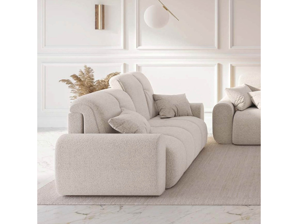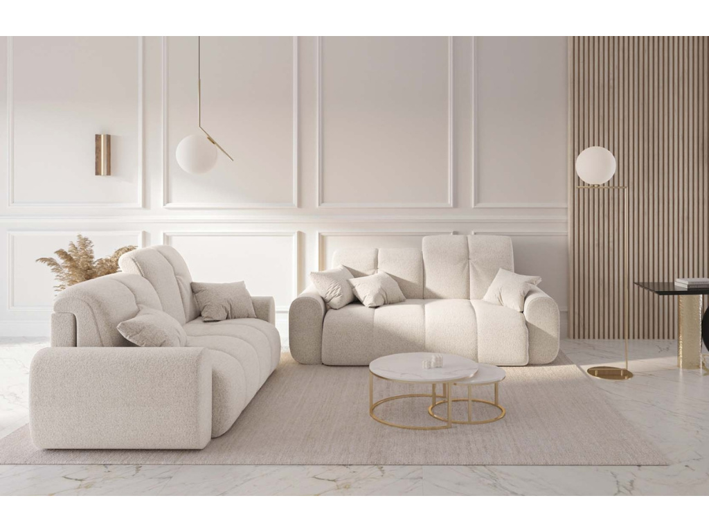 Dvoumístná pohovka DEVICHY Tous je opravdu prostorná - snadno se tak na ní vměstná celá vaše rodina. Zaoblené detaily v kombinaci s nízkou podnoží dodávají pohovce jedinečný a elegantní vzhled. Pohovka je čalouněná kvalitní bouclé látkou, která je velice příjemná na dotek a je charakteristická svou nadprůměrnou odolností (ZERO SPOT SYTEM). Díky nastavitelné opěrce hlavy nabízí pohovka opravdu pohodlné posezení - ideální pro chvíle odpočinku i setkání s přáteli.