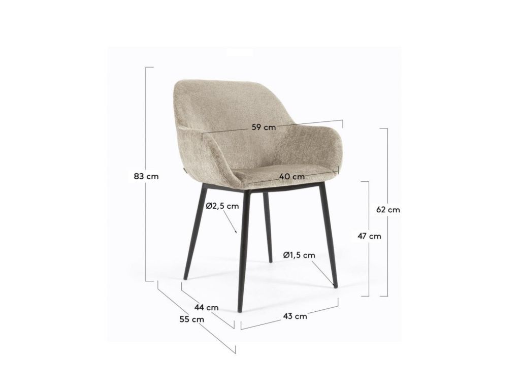 Látková jídelní židle Kave Home Konna vás zaujme nadčasovým stylem i komfortem. Pevná podnož z černě lakované oceli působí zajímavým dojmem a spolu se sedákem a opěrkou s područkami z příjemné žinylkové látky s vyšším chlupem má židle nádech retro stylu. Hodí se do moderních i klasických jídelen s prvky 70. let.