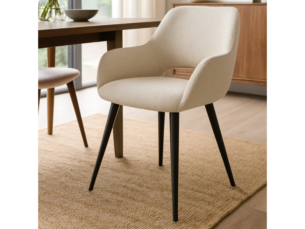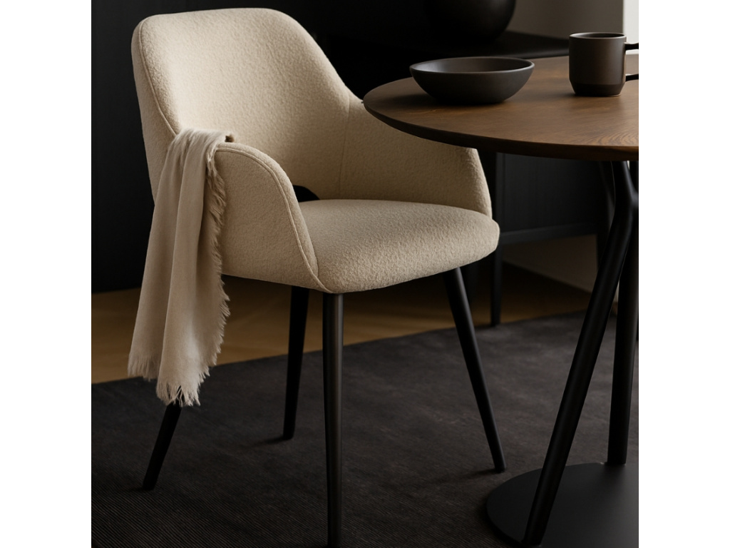 Jídelní židle Fer značky LABEL51 se pyšní béžovým boucle čalouněním a elegantními křivkami. Její prostorné opěradlo plynule přechází v područky a je ozvláštněno výrazným otvorem, který židli dodává na originalitě. Fer představuje pro vaši jídelnu nejen stylové designové oživení, ale hlavně velice maximálně pohodlné místo k sezení, se kterým si oblíbený pokrm vychutnáte ještě intenzivněji. Tento atraktivní kousek ale nemusí být jen chloubou jídelny - Fleur vám může dělat společnost také u pracovního stolu nebo u toaletního stolku.