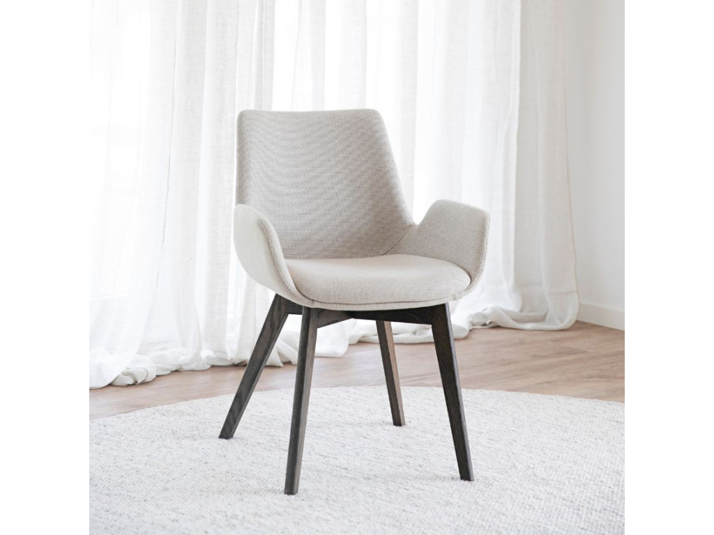 Moderní a nadčasový design jídelní židle DRIMSDALE skvěle zapadne nejen do interiérů zařízených ve stylu scandi. Barvu dubové podnože si můžete vybrat ze tří variant a také kvalitní látkové čalounění je dostupné ve více zbarveních. Díky vysokému martindale použité látky se vůbec nemusíte bát častého používání židlí - skvěle se hodí i do domácností s dětmi. Židle si získá vaši oblibu nejen svým elegantním vzhledem, ale také pohodlím, o které se postarají vysoké područky. A pokud zrovna nehledáte nové židle do jídelny, DRIMSDALE vytvoří atraktivní duo také s pracovním i studentským stolem.