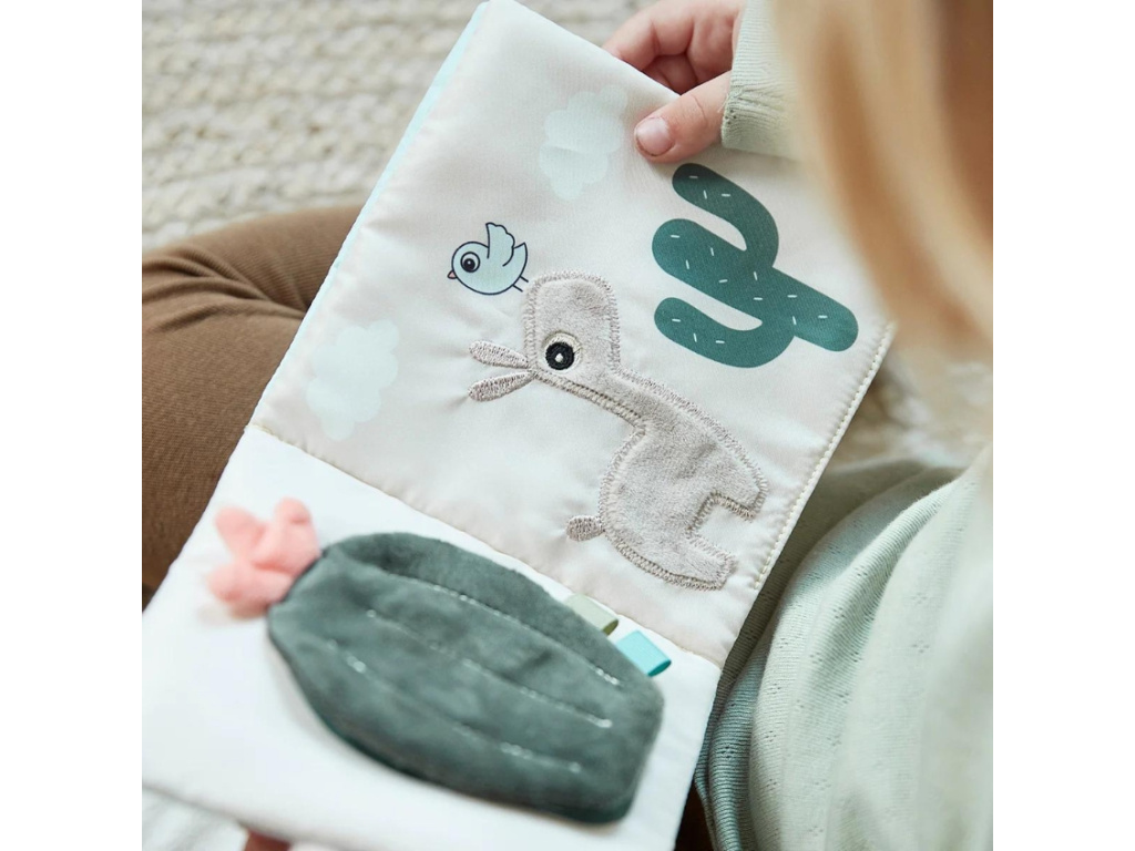 Knížka s aktivitami Lalee od značky Done by Deer je ideální hračkou pro každé zvídavé miminko. Oplývá mnoha aktivitami, které pomáhají rozvíjet dětské smysly a dovednosti. Najdete zde například mnoho různých textur, zvrásněné povrchy, kousátko na bolavé dásně nebo zrcátko pro zkoumání dětské tvářičky. Díky plastovému kroužku lze knížku zavěsit například na postýlku, kočárek nebo hrazdičku. Knížka bude také skvělým dárkem a nezbytným doplňkem kamkoliv na cesty.