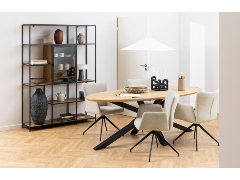 Černá pavoučí základna, výrazné područky a zakřivená záda vytvářejí opravdu elegantní siluetu jídelní židle Neyo od značky Scandi. Díky detailům, jako je řez mezi opěradlem a područkou, má tato židle jedinečný design, který doladí interiéry laděné v moderním, skandinávském i retro stylu. Kovová podnož s otočnou funkcí vám umožní usednout a vstát bez nutnosti posouvat židli. Jakmile se vaši hosté posadí do židle Neyo, už nikdy nebudou chtít odejít!
