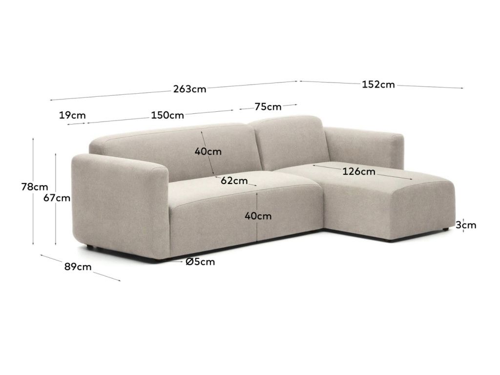 Trojmístná pohovka Kave Home Neom pochází z modulární série, díky které si můžete vytvořit pohovku přesně podle vašich potřeb. Středový modul, rohové moduly i lenošky – vyberte si jednotlivé části a seskládejte je tak, aby vyhovovali velikosti vašeho obývacího pokoje a vy jste získali přesně tolik místa k sezení, kolik potřebujete. A když vás přestane současné rozmístění bavit, můžete pohovku kdykoliv zase přeskládat! Pohovka je čalouněná kvalitní látkou v jemném béžovém odstínu, která díky vysokému martindale může být bez problémů využita nejen v domácnostech, ale také v komerčních prostorech. Výhodou je možnost zvolit si umístění rohové části.