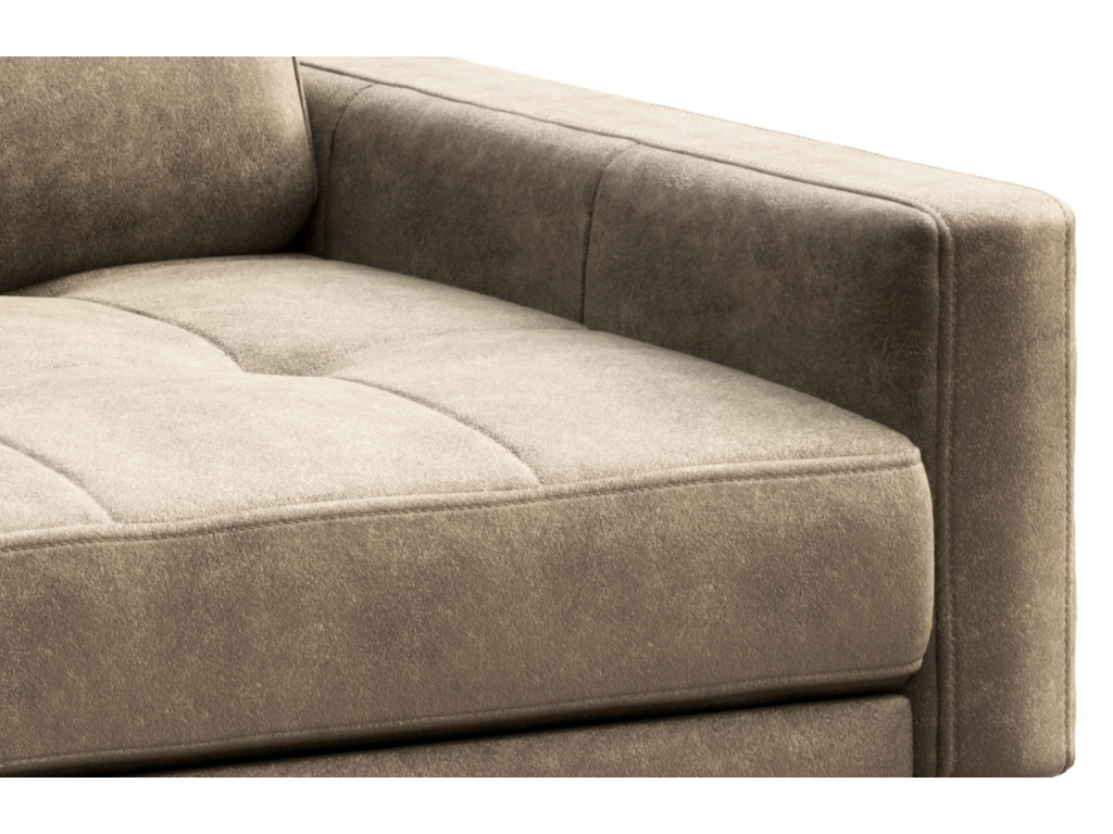 Designová rohová pohovka MESONICA Musso Tufted I bude díky svému úchvatnému vzhledu nepřehlédnutelnou součástí Vaší domácnosti. Stabilní podnož z bukového dřeva v tmavé barvě je skvěle doplněna o béžové čalounění z mikrovlákna, které dodává pohovce estetický vzhled a nadprůměrnou životnost.