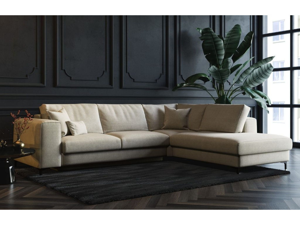 Moderní čtyřmístná pohovka DEVICHY Rothe s jednoduchou konstrukcí uspokojí potřeby i toho nejnáročnějšího zákazníka. Pohovku lze snadným rozložením přeměnit na pohodlné a dostatečně velké lůžko. Její čalounění si na první dotyk zamilujete - je tvořeno kvalitní látkou v béžovém provedení, která je charakteristická svou vysokou odolností a speciální vodoodpudivou úpravou. Reprezentativní a exkluzivní vzhled pohovky v sobě dokonale kombinuje pohodlí a styl.