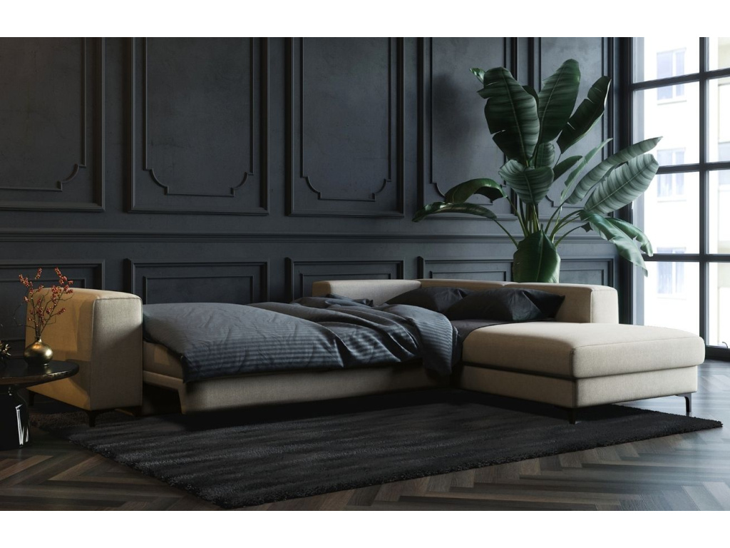 Moderní čtyřmístná pohovka DEVICHY Rothe s jednoduchou konstrukcí uspokojí potřeby i toho nejnáročnějšího zákazníka. Pohovku lze snadným rozložením přeměnit na pohodlné a dostatečně velké lůžko. Její čalounění si na první dotyk zamilujete - je tvořeno kvalitní látkou v béžovém provedení, která je charakteristická svou vysokou odolností a speciální vodoodpudivou úpravou. Reprezentativní a exkluzivní vzhled pohovky v sobě dokonale kombinuje pohodlí a styl.