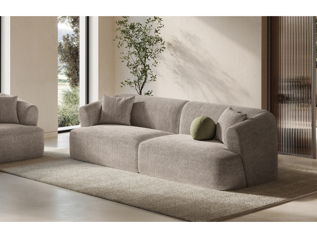 Pohovka Campi od značky Cosmopolitan Design je ztělesněním moderní elegance. Její nízký profil, výrazné zaoblené tvary a velkorysé sedáky vytvářejí dojem klidu, luxusu a sebevědomého designu. O vaše maximální pohodlí se postará manšestrová látka Lincoln – látka s jemným žebrovaným vzorem, sametově měkkým omakem a příjemnou hřejivostí, která láká k posezení. Pohovka je dostupná v pestré paletě barev – od jemných neutrálních tónů až po syté, výrazné odstíny. Díky tomu si snadno vyberete variantu, která dokonale ladí s vaším stylem i náladou interiéru. Campi je dokonalým spojením moderního vzhledu a každodenního pohodlí – pro interiér, který má styl i duši.