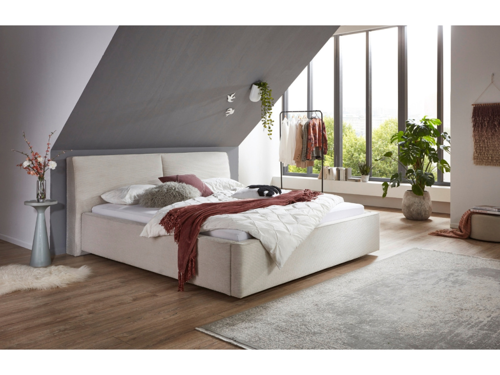 Dvoulůžková postel Magnum přináší do ložnice kombinaci stylového designu a výjimečně příjemných materiálů. Je čalouněná manšestrovou látkou, která je na dotek měkká, hřejivá a přitom vizuálně výrazná. Vertikálně prošívané čelo působí elegantně a vytváří útulné zázemí pro večerní relax s knihou nebo snídani do postele. Nízký rám a čisté linie dávají posteli moderní, sebevědomý vzhled, zatímco jemná struktura manšestru dodává celé kompozici hloubku a texturu. Díky univerzálnímu designu se Magnum hodí do minimalistických i boho interiérů. Stane se víc než místem ke spaní – bude atraktivním středobodem vaší ložnice.
