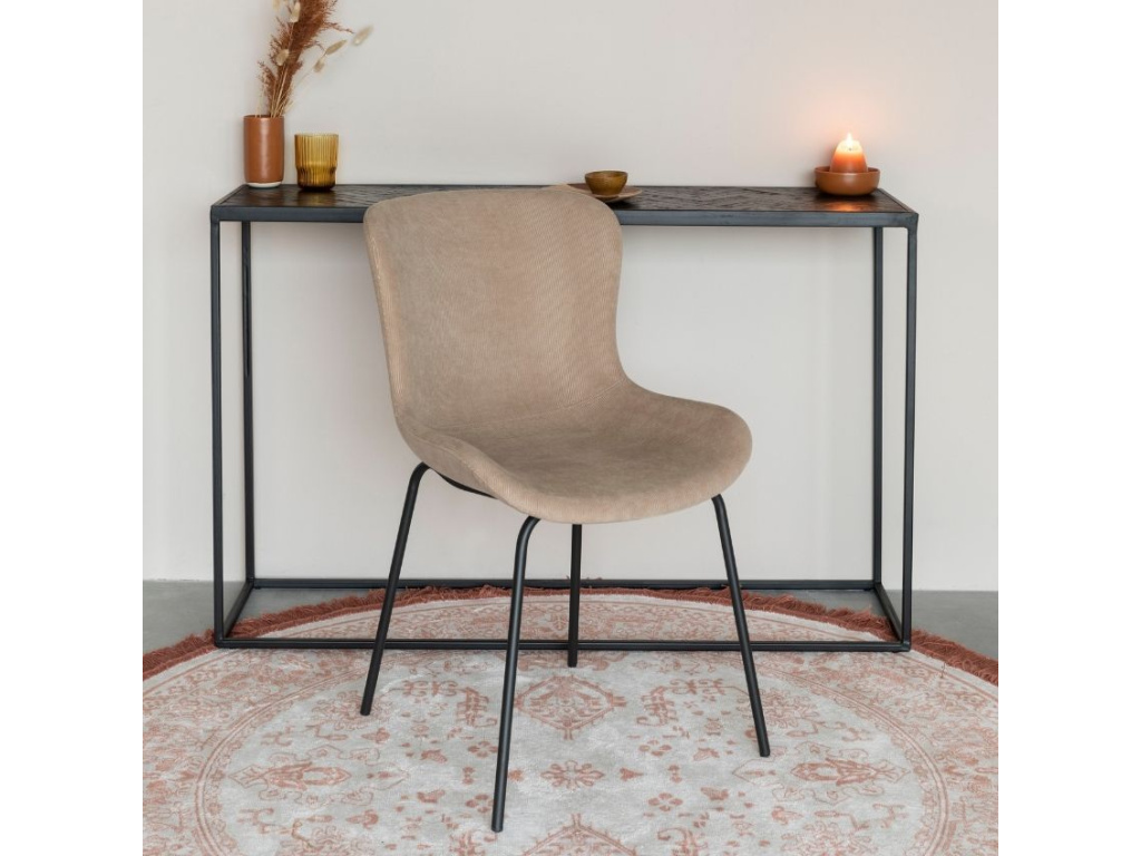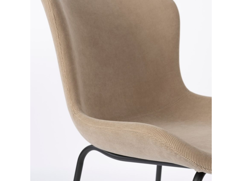 Jídelní židle JUNZO je čalouněná příjemnou manšestrovou látkou, díky které skvěle ozvláštní každý jídelní stůl. Manšestrové čalounění je vkusně doplněno podnoží z černě lakované oceli, která zajišťuje potřebnou stabilitu a pevnost židle. JUNZO nemusí být umístěna jen do jídelny, skvěle se hodí také k toaletnímu stolku nebo do pracovny. Dostupná je v několika barevných variantách.