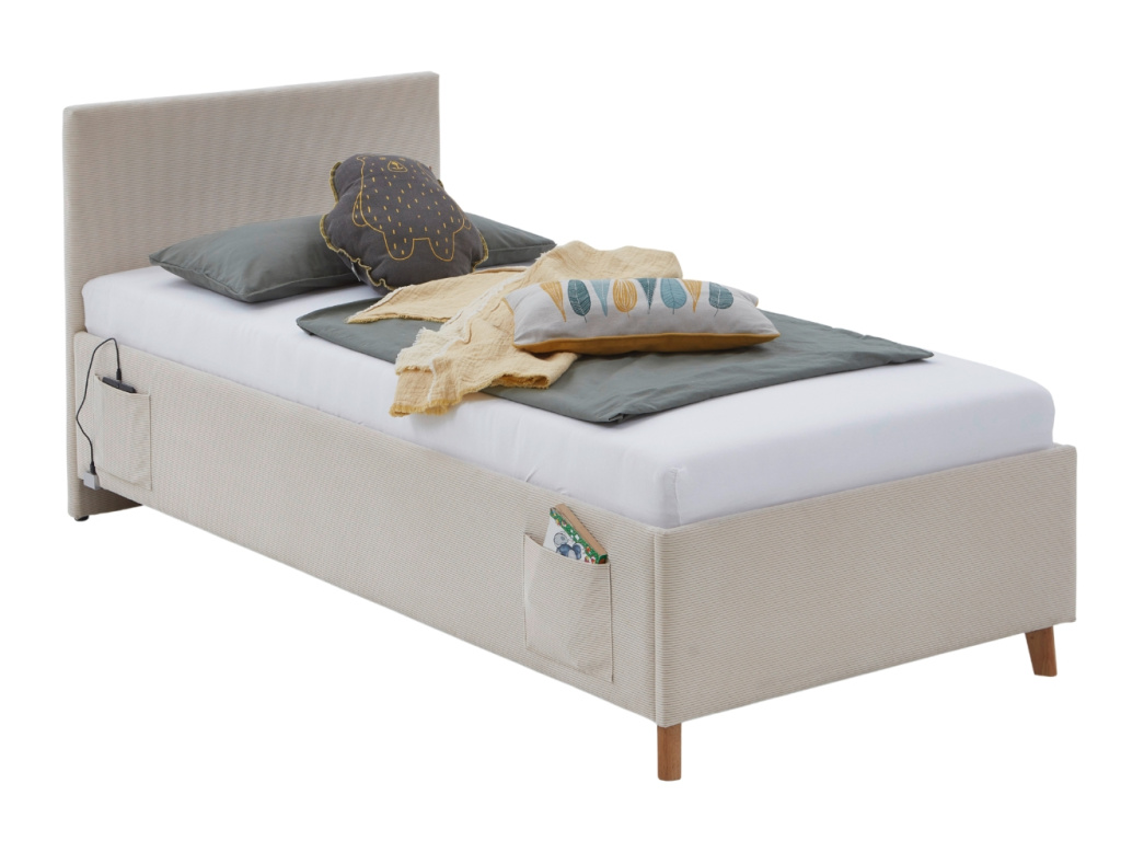 Stylová postel Cool s manšestrovým čalouněním je skvělou volbou pro dětské i studentské pokoje. Na jejím boku najdete prostorné kapsy, do kterých se vejde vše, co bude potřeba mít před spaním po ruce – knížka, časopis, herní konzole i drobné hračky či brýle na čtení. Dalším praktickým detailem je zabudovaný výstup pro USB i USB-C, díky kterému je možné nabíjet telefon, MP3 přehrávač nebo třeba hodinky. Postel Cool je navíc dostupná ve čtyřech barvách, ze kterých si vyberou kluci i holky. K dostání je také varianta s čalouněným bočním panelem.