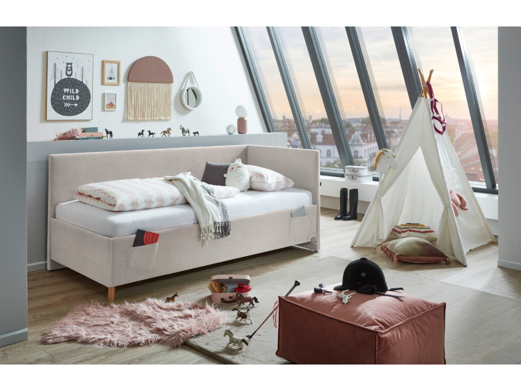 Stylová postel Cool s manšestrovým čalouněním je skvělou volbou pro dětské i studentské pokoje. Na jejím boku najdete prostorné kapsy, do kterých se vejde vše, co bude potřeba mít před spaním po ruce – knížka, časopis, herní konzole i drobné hračky či brýle na čtení. Dalším praktickým detailem je zabudovaný výstup pro USB i USB-C, díky kterému je možné nabíjet telefon, MP3 přehrávač nebo třeba hodinky. Postel Cool je navíc dostupná ve čtyřech barvách, ze kterých si vyberou kluci i holky. K dostání je také varianta bez bočního panelu.