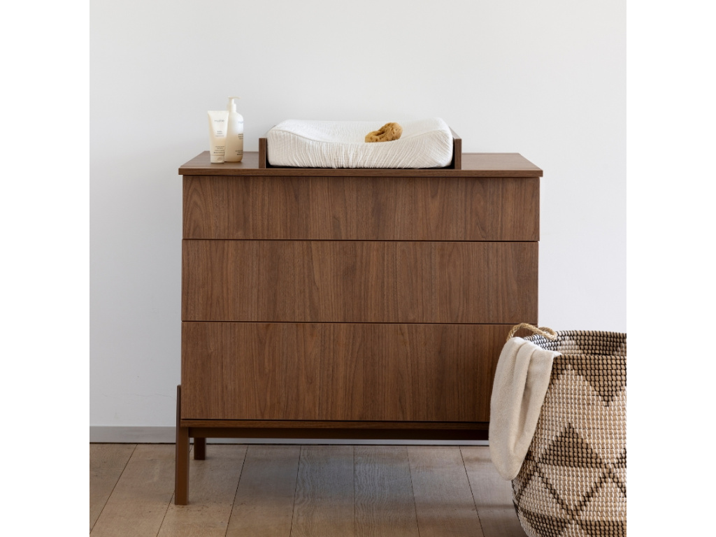 Doplňte dřevěnou komodu Quax Ashi o přebalovací nástavbu, která je k ní kompatibilní. Nástavba se pyšní minimalistickým designem a je vyrobena z laminované dřevotřísky s polyuretanovým lakem. Zarážky zajistí, aby přebalovací podložka neklouzala a zůstala na svém místě. Doporučujeme kombinovat s podložkami Quax o velikosti 70 x 50 cm.