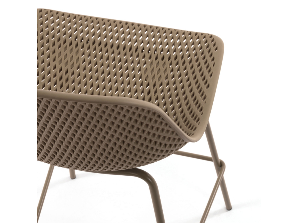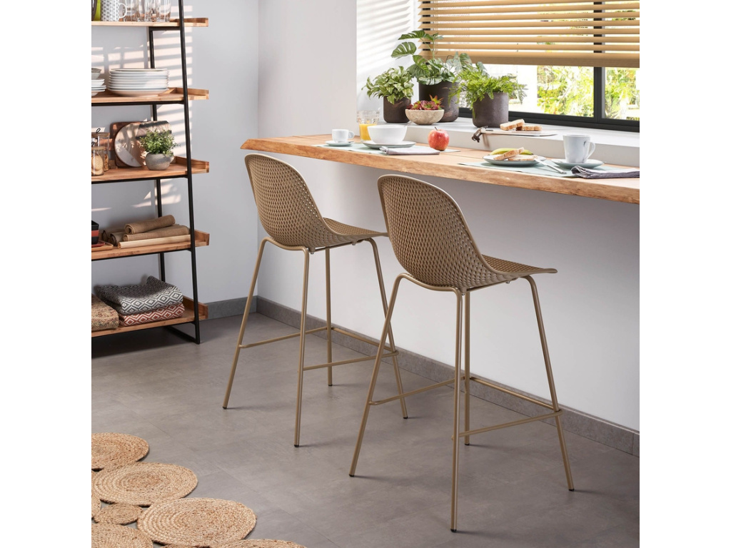 Designová barová židle Kave Home Quinby zaujme svým originálním zpracováním. Plastový perforovaný sedák vytváří společně s kovovou podnoží osobitý celek, díky čemuž skvěle doplní moderní interiéry. Praktickým elementem je elegantní podnožka, která vám dopřeje ještě větší pohodlí z posezení. Využít ji navíc můžete také v exteriéru – bude designovým oživením každého zahradního posezení.