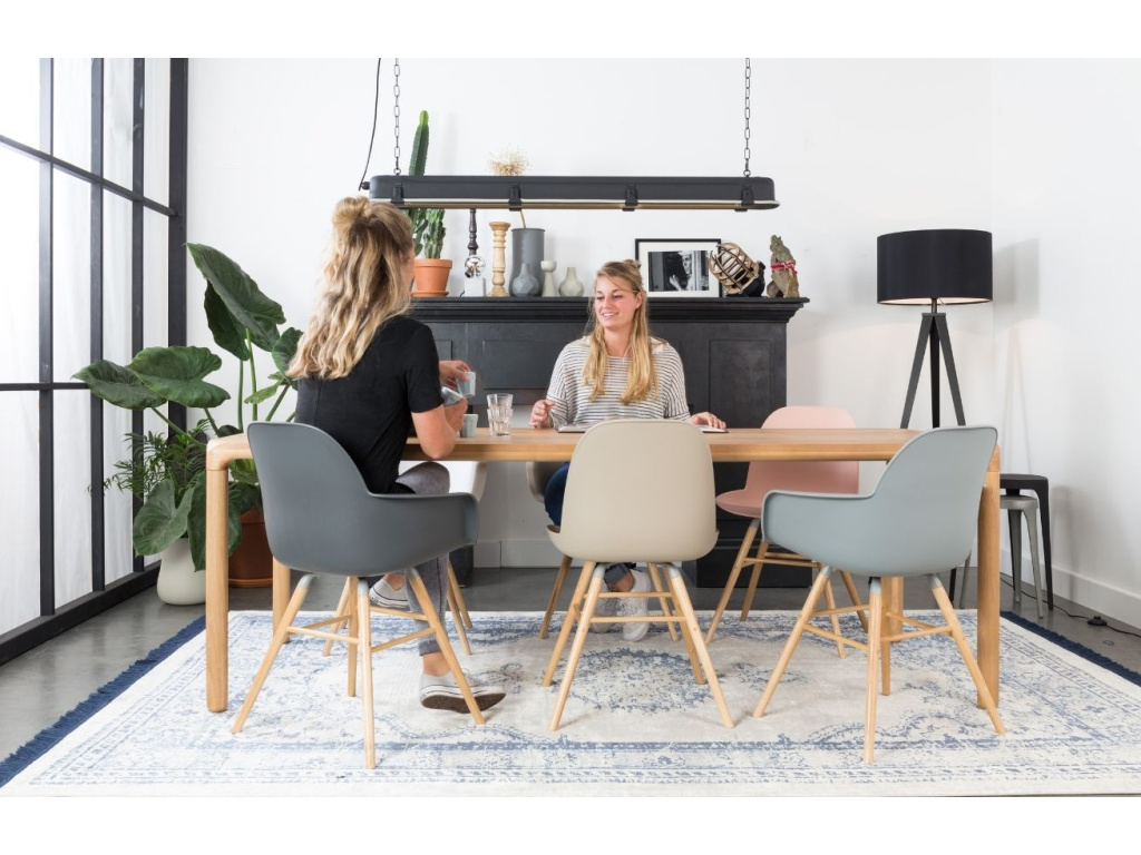 Jídelní židle ZUIVER ALBERT KUIP v taupe barvě. Sedák z propylenu je připevněn na pevné podnoži z kvalitního jasanového dřeva pomocí hliníkového rámu. Díky tomu poskytuje Albert Kuip nosnost až 140 kg.