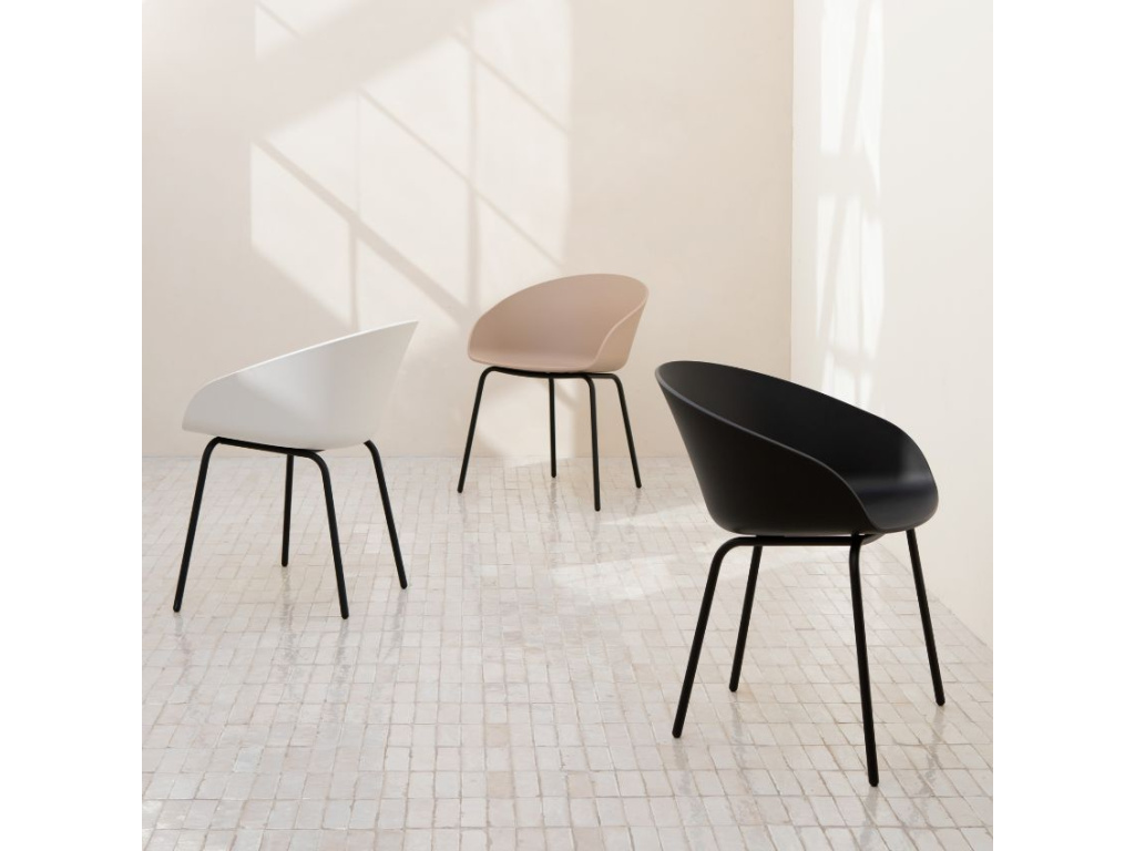 Jídelní židle VOID, navržená Lexem Pottem, představuje atraktivní designový kousek. Byla navržena tak, aby ji šlo snadno zasunout pod každý jídelní stůl – to oceníte hlavně v domácnostech, kde probíhá boj o cenné a metry čtvereční. I přes její kompaktní design vás ohromí svým pohodlím, které je umocněno vyššími područkami. Kombinace černého plastu a lakovaného kovu dodá vaší jídelně nádech elegance a minimalismu, využít ji ale můžete i v pracovně nebo u psacího stolu. Dostupná je ve třech barevných variantách a můžete ji mít také s dubovou podnoží.