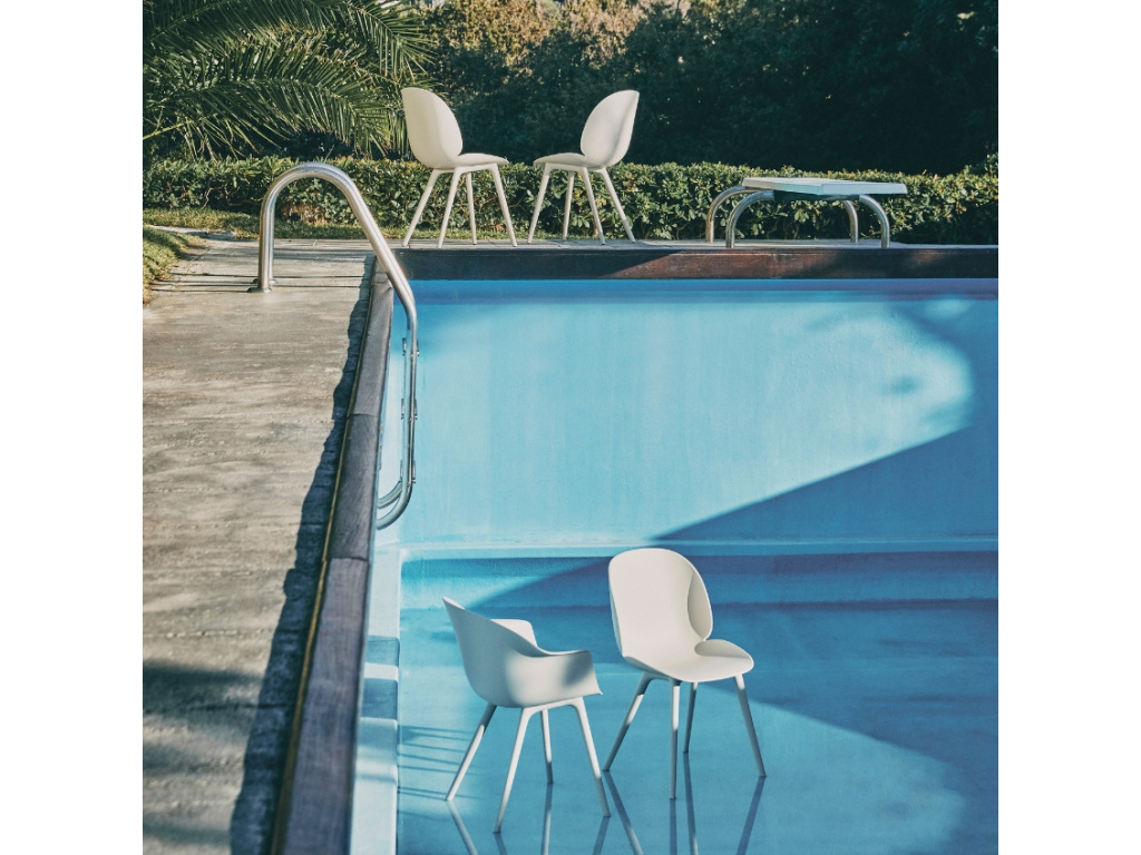 Beetle od značky GUBI je elegantní venkovní židle, která spojuje ikonický design s odolností vůči povětrnostním vlivům. Židle nabízí židle zaoblené linie a pohodlné tvarování, které se přizpůsobí tělu a zajistí komfortní posezení i při delším stolování. Díky své lehké konstrukci se snadno přenáší a její univerzální design ji předurčuje nejen pro zahrady a terasy, ale také pro venkovní posezení kaváren, restaurací nebo hotelových prostor. V nabídce je k dispozici v bílém a béžovém odstínu a lze ji doplnit o venkovní sedák pro ještě vyšší komfort. Beetle spojuje estetickou hodnotu s praktičností a představuje ideální řešení pro každého, kdo chce stylový nábytek i pod širým nebem.