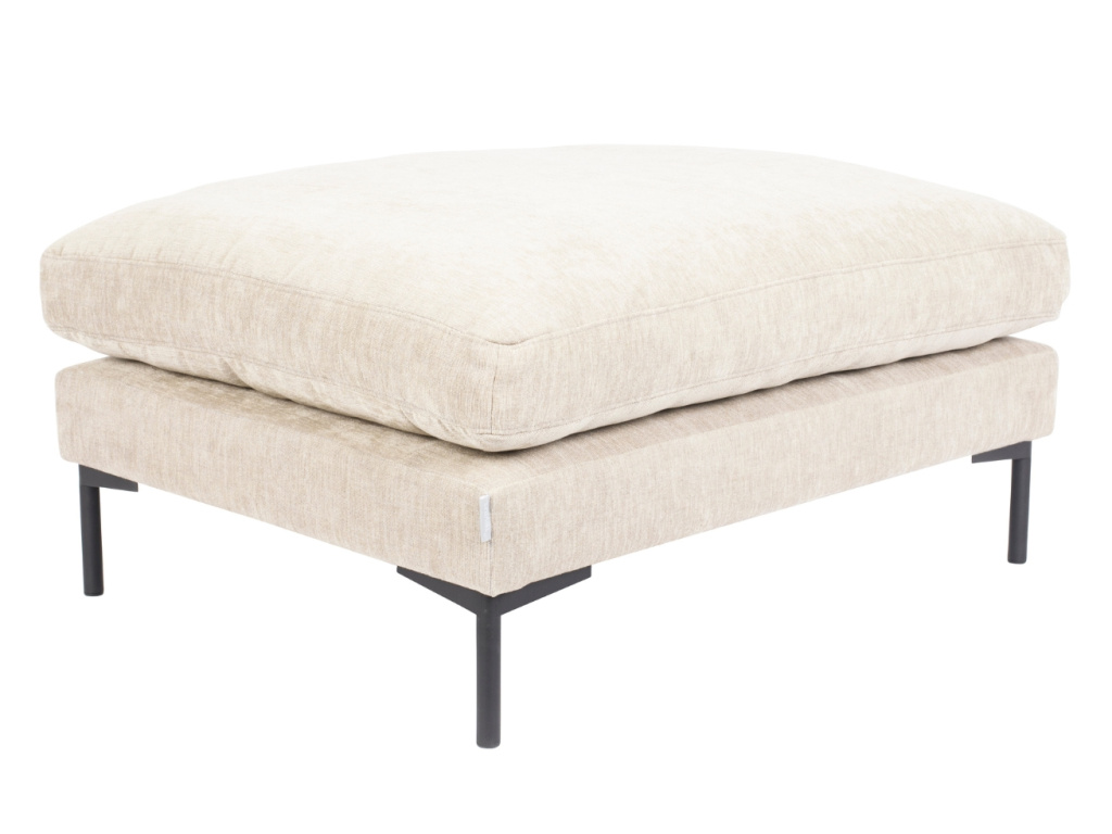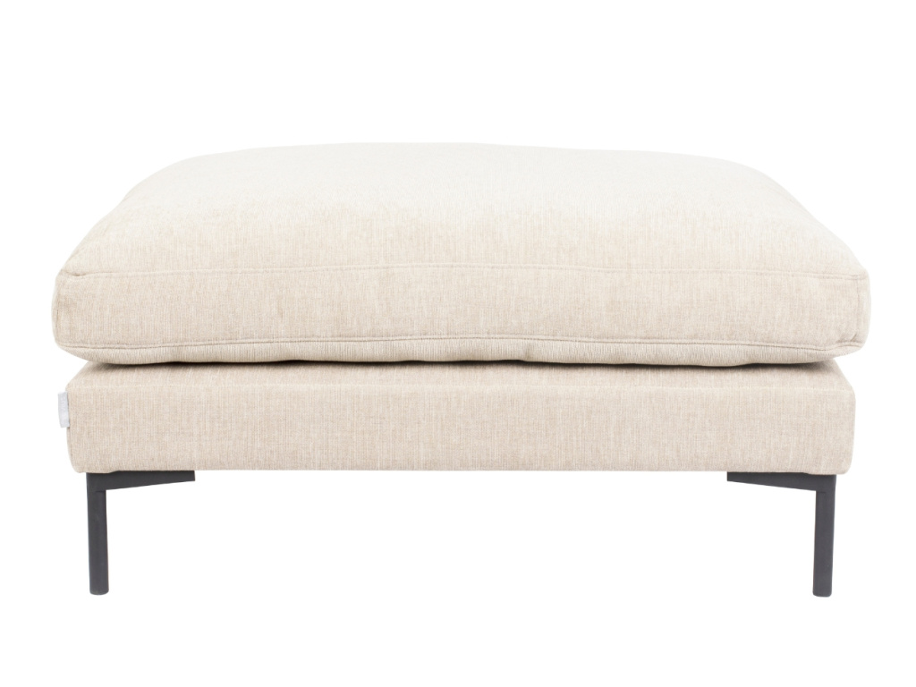 Podnožka Summer v jemném béžovém odstínu působí měkce, vzdušně a přirozeně doplňuje moderní interiér. Přinese do interiéru příjemný komfort a vytvoří ideální místo pro odpočinek nohou nebo pro využití jako doplňkový sedací prvek. Štíhlá černá podnož zajišťuje odlehčený vzhled a nechává vyniknout měkkým liniím čalounění. Tento kousek se díky své univerzální barvě i nadčasovému designu skvěle hodí k pohovce, ale krásně zapadne i do samostatných sestav, kde interiéru dodá útulnost a harmonii.