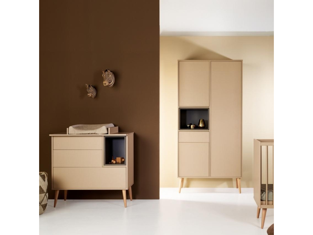 Moderní stylová komoda Quax Cocoon ze stejnojmenné řady potěší každého milovníka minimalistických a skandinávských stylů bydlení. Praktickou výhodou celé komody jsou prostorné zásuvky a polička kam pohodlně uložíte všechny potřeby na přebalování, oblečení i hračky. Komodu lze využít samostatně nebo po dokoupení nástavby jako přebalovací pult.