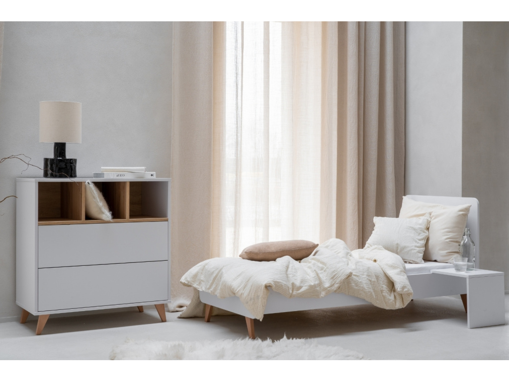 Vsaďte na udržitelnost a investujte do budoucnosti – díky postelím od značky Quax, které jsou navržené v konceptu Good to Grow, může mít vaše dítě stejnou postel od narození až do školních let. S touto sadou snadno přestavíte dětské postýlky Quax Loft 70 × 140 cm na dětskou postel 70 × 170 cm. V setu kromě prodlužovací části najdete i praktický noční stolek. A pokud chcete pro své dítě extra bezpečí, doporučujeme k sadě pořídit také bezpečnostní zábranu Quax Ashi, usnadníte tak vašemu dítěti přechod z postýlky na otevřené lůžko.