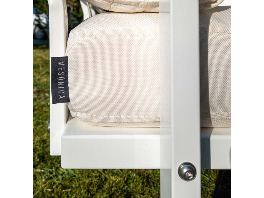 Vyberu siBéžová rohová zahradní pohovka MESONICA Soledo s bílou podnoží 205 cm, levá/pravá