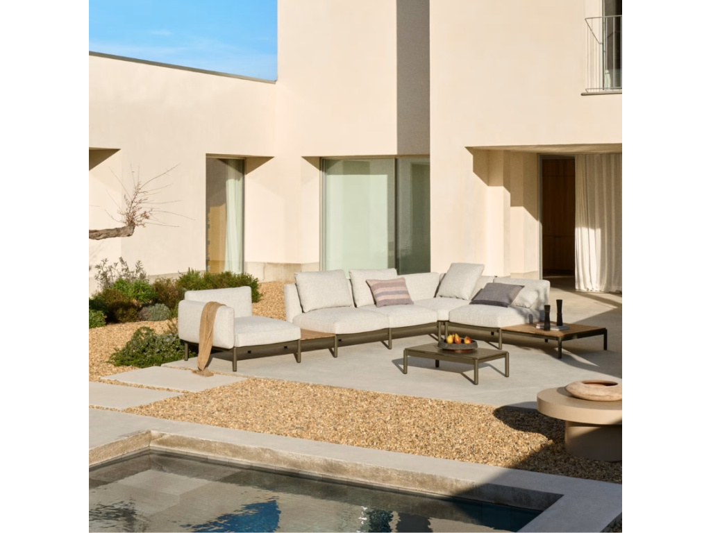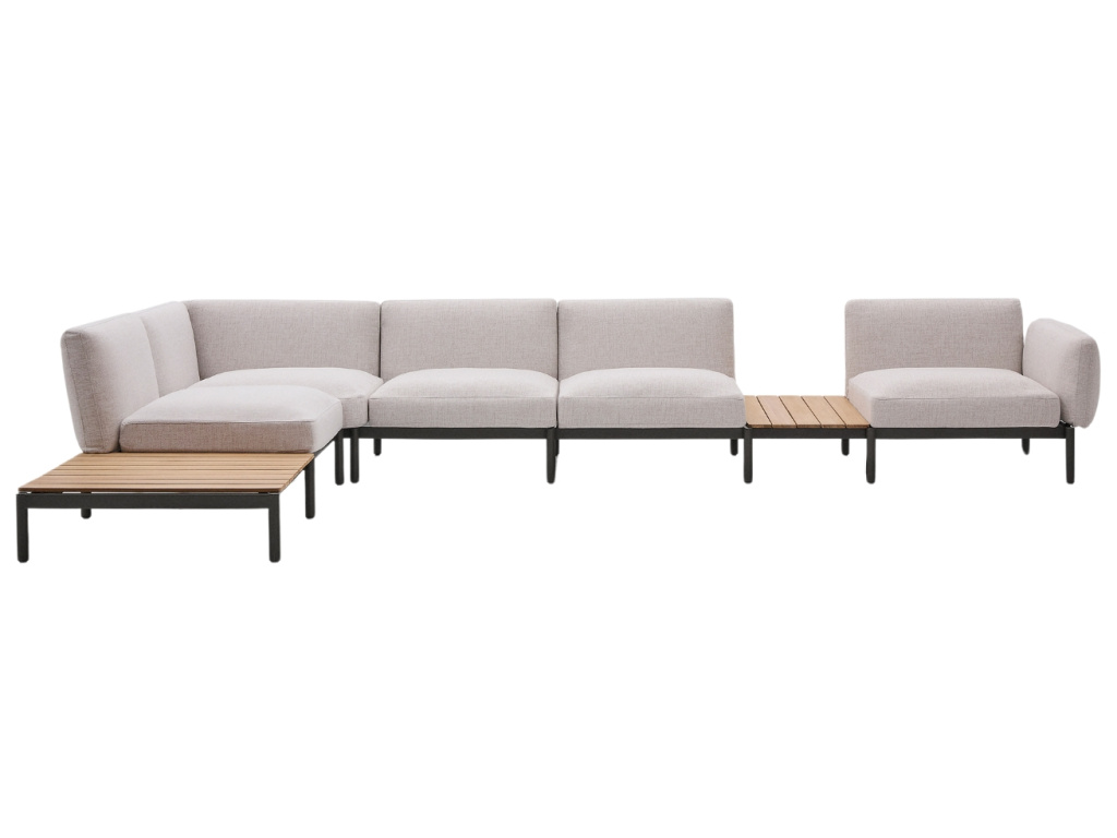 Doplňte svůj venkovní nábytek o modulární rohovou pohovku Sorells od Kave Home a vytvořte si na zahradě oázu klidu přesně podle svých představ. Maximální stabilitu poskytne lakovaná hliníková konstrukce v tmavě šedé barvě, která je odolná vůči korozi a povětrnostním vlivům. Konstrukce je doplněna čalouněnými sedáky s opěradlem, které zajistí vysoký komfort při posezení s přáteli i soukromém odpočinku. Čalounění je odolné vůči UV záření, proto se nemusíte obávat vyblednutí látky. Pohovka nabízí pět míst k sezení s pohodlnými odnímatelnými polštáři a dvě odkládací místa v podobě integrovaných stolků z teakového dřeva. Dodejte své zahradě osobitost s kolekcí Sorells, která nabízí pomocí modulárních kombinací přizpůsobit si venkovní sezení podle vlastních potřeb.