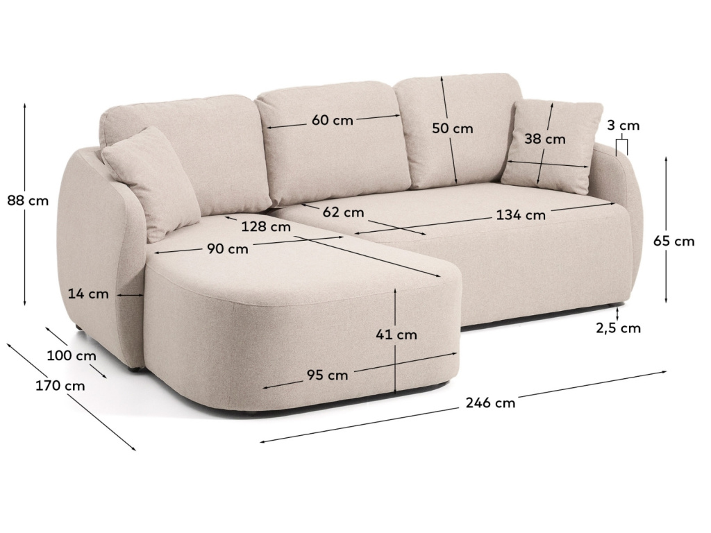 Podívám seBéžová rozkládací pohovka Laira 246 cm, levá