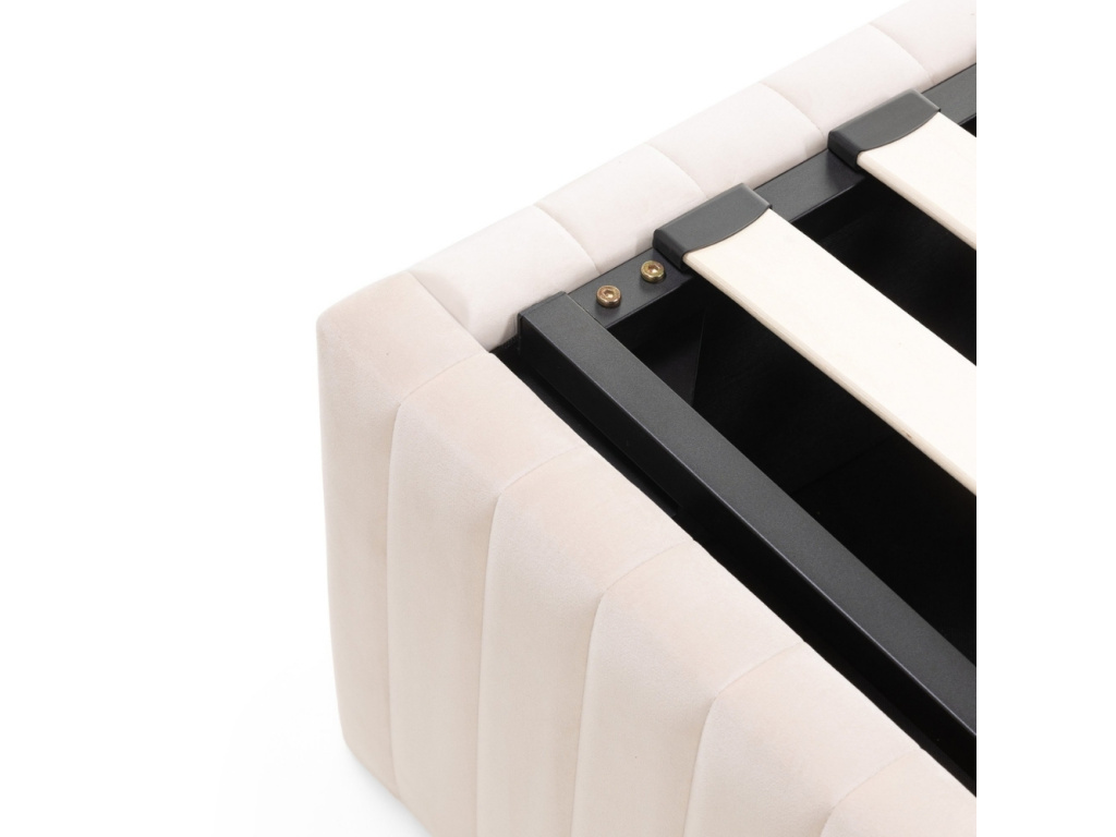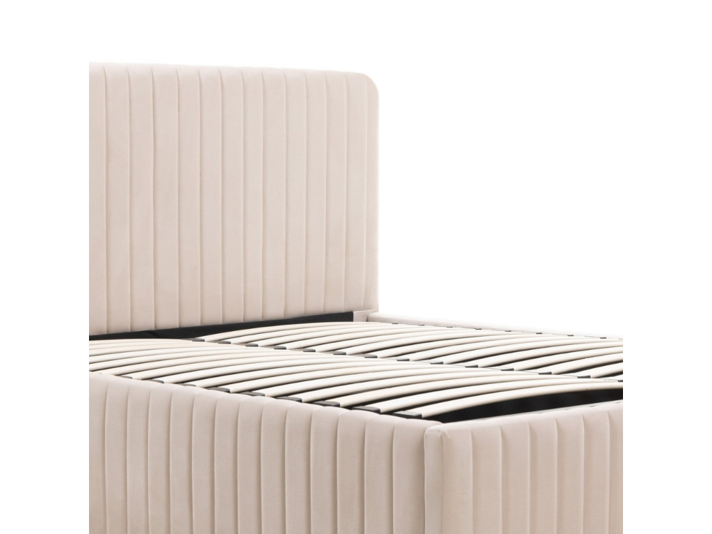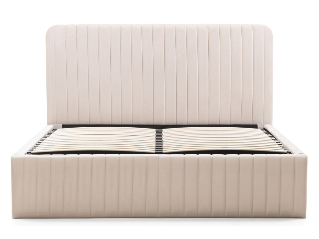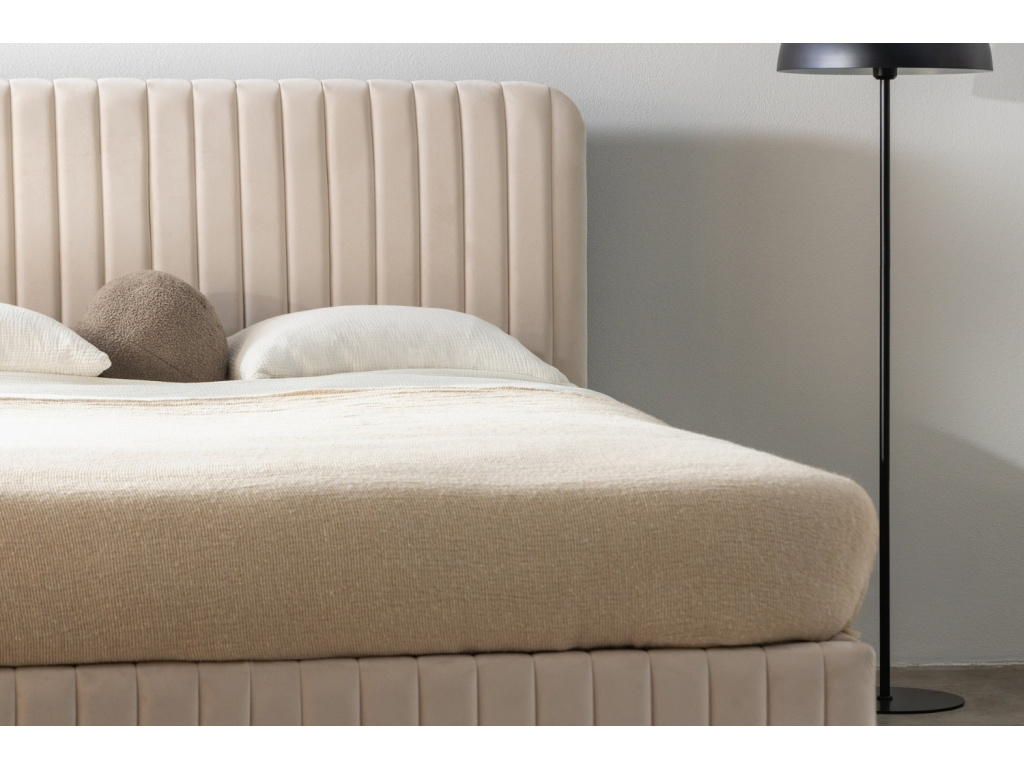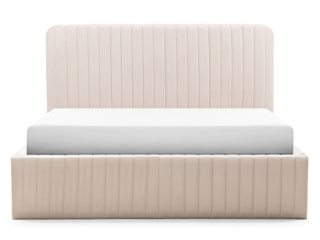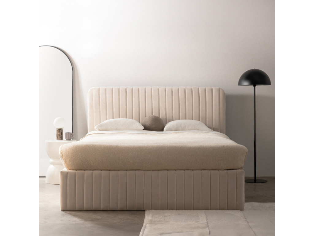 Čalouněná postel Andre v rozměru přináší dokonalou rovnováhu mezi elegancí, pohodlím a funkčností. Je čalouněná měkkou sametovou látkou v béžovém odstínu, která dodává ložnici hřejivý charakter s dotekem luxusu. Vysoké polstrované čelo s ozdobným prošíváním vytváří útulné zázemí pro večerní čtení nebo chvíle odpočinku. Pod čistým, moderním designem se skrývá promyšlená praktičnost – velkorysý úložný prostor ideální pro lůžkoviny, deky či sezónní oblečení. Díky kovovému rámu s pružnými lamelami postel poskytuje stabilní, ergonomickou oporu a zaručuje pohodlný spánek noc co noc. Kombinace sametového povrchu a elegantních linií dělá z postele nadčasový kus nábytku, který si zamilujete.