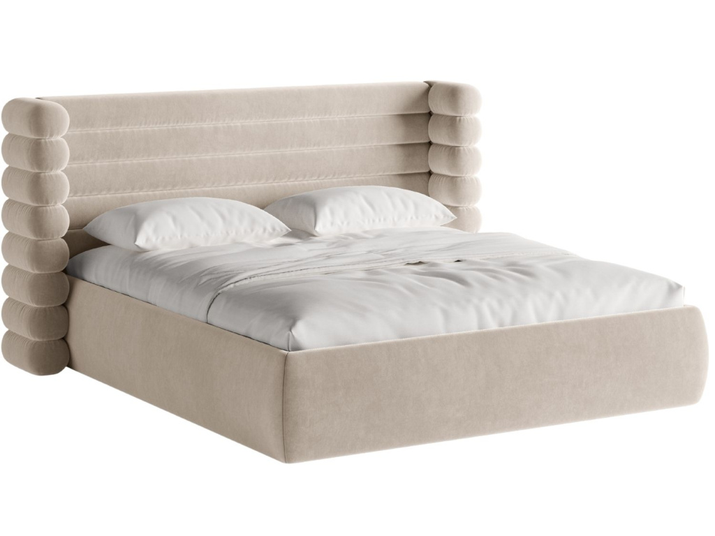 NakupovatBéžová sametová dvoulůžková postel Mount 160 x 200 cm