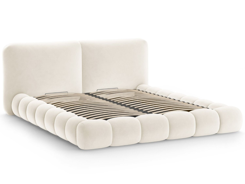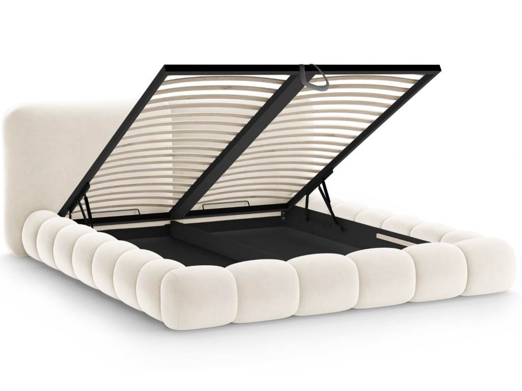 Postel Solange vnese do ložnice klidnou, moderní atmosféru a pocit příjemného pohodlí. Jemně zaoblené čelo poskytuje pohodlnou oporu při čtení i odpočinku a měkce čalouněný rám působí útulně a přirozeně. Stabilní konstrukce zajišťuje pevnou oporu matrace a pod lůžkem se nachází praktický úložný prostor pro ložní prádlo nebo textilie, ke kterému se snadno dostanete nadzvednutím roštu. Sametová látka je hebká na dotek, jemně se leskne a dodává posteli elegantní vzhled, přitom je odolná a vhodná i do domácností s mazlíčky. Postel Solange je dostupná v několika barevných provedeních a skvěle se kombinuje s jednoduchým konferenčním stolkem nebo designovou lampou, které dotvoří harmonický vzhled ložnice.
