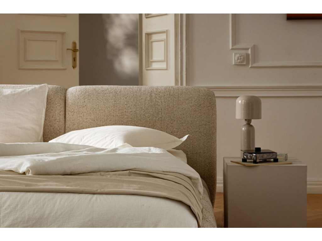 Postel Solange vnese do ložnice klidnou, moderní atmosféru a pocit příjemného pohodlí. Jemně zaoblené čelo poskytuje pohodlnou oporu při čtení i odpočinku a měkce čalouněný rám působí útulně a přirozeně. Stabilní konstrukce zajišťuje pevnou oporu matrace a pod lůžkem se nachází praktický úložný prostor pro ložní prádlo nebo textilie, ke kterému se snadno dostanete nadzvednutím roštu. Sametová látka je hebká na dotek, jemně se leskne a dodává posteli elegantní vzhled, přitom je odolná a vhodná i do domácností s mazlíčky. Postel Solange je dostupná v několika barevných provedeních a skvěle se kombinuje s jednoduchým konferenčním stolkem nebo designovou lampou, které dotvoří harmonický vzhled ložnice.