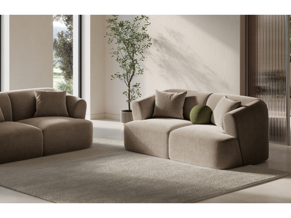 Pohovka Campi od značky Cosmopolitan Design je ztělesněním moderní elegance. Její nízký profil, výrazné zaoblené tvary a velkorysé sedáky vytvářejí dojem klidu, luxusu a sebevědomého designu. Luxusní sametové čalounění s jemným leskem a strukturovaným povrchem působí elegantně a je mimořádně odolné. Díky certifikaci OEKO-TEX® STANDARD 100 je navíc zaručeno, že látka neobsahuje žádné škodlivé látky a je zcela bezpečná i pro citlivou pokožku. Pohovka je dostupná v pestré paletě barev – od jemných neutrálních tónů až po syté, výrazné odstíny. Díky tomu si snadno vyberete variantu, která dokonale ladí s vaším stylem i náladou interiéru. Campi je dokonalým spojením moderního vzhledu a každodenního pohodlí – pro interiér, který má styl i duši.