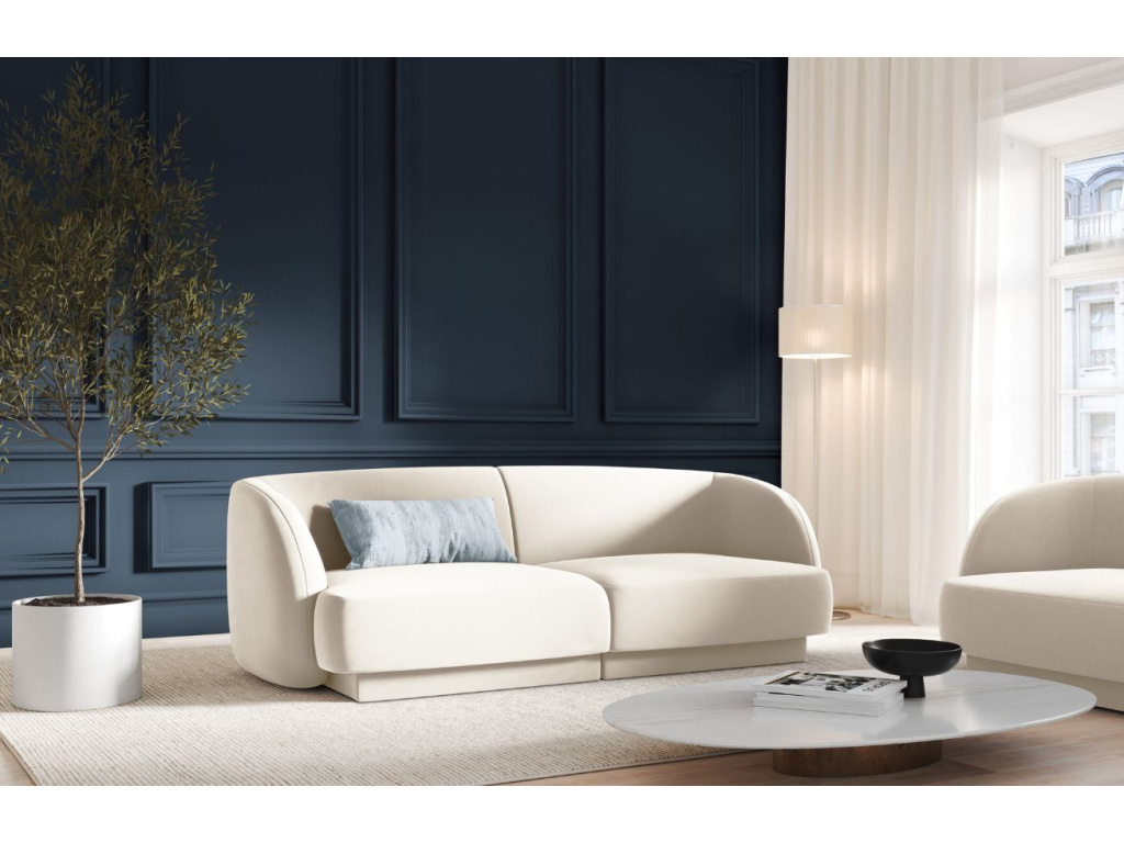 Dvoumístnou pohovku Miley od značky Micadoni si zamilujete! Její obloukovitě tvarované opěradlo vybízí k tomu, abyste se na chvíli pohodlně usadili. Díky mírně zapuštěné základně dodává sezení vznášející se charakter, který dotváří vzhled připomínající oblak. Měkký, odolný a na pohled příjemný samet poskytuje nábytku lákavý vzhled, který vnese do místnosti záři a pocit sofistikovanosti. Pohovka je ideální volbou do interiéru v moderním nebo skandinávském stylu. K pohovce je možné přikoupit další produkty z kolekce Miley. Díky tomu si můžete vytvořit sedací soupravu, kterou je vhodné kombinovat se skleněným nebo dřevěným konferenčním stolkem.