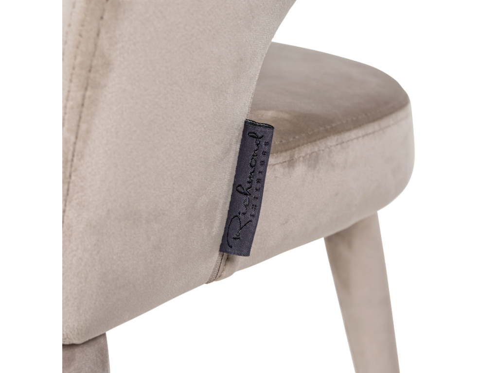 Sametová jídelní židle Gia od značky Richmond Interiors zaujme originálním designovým sedákem čalouněným béžovým sametem. Stejným materiálem je částečně potažena i podnož, což v kombinaci se zlatým kovem vytváří originální a stylový detail. Židle se stane luxusním kouskem v každém jídelním koutku. Navíc disponuje FFRs certifikátem, který zaručuje určitý stupeň nehořlavosti. Díky tomu se hodí i do komerčních prostor.