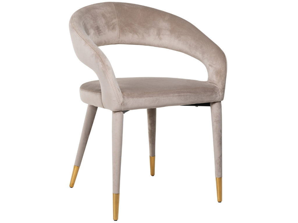 Sametová jídelní židle Gia od značky Richmond Interiors zaujme originálním designovým sedákem čalouněným béžovým sametem. Stejným materiálem je částečně potažena i podnož, což v kombinaci se zlatým kovem vytváří originální a stylový detail. Židle se stane luxusním kouskem v každém jídelním koutku. Navíc disponuje FFRs certifikátem, který zaručuje určitý stupeň nehořlavosti. Díky tomu se hodí i do komerčních prostor.
