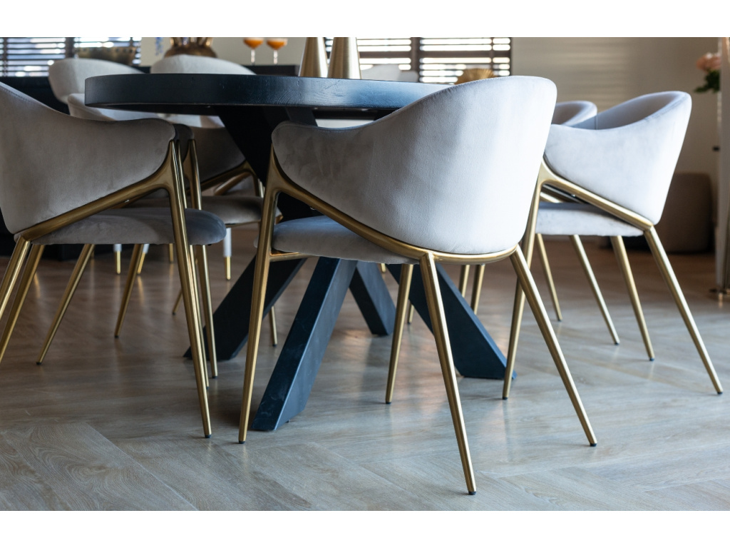 Příjemné sametové čalounění v kombinaci s originálně tvarovanou podnoží dělá z jídelní židle Gwen velice atraktivní kousek nábytku. Kovová podnož zajišťuje perfektní stabilitu židle a její vysoké područky umocňují komfort, který židle nabízí. Díky FERs certifikátu, který zaručuje určitou míru nehořlavosti, se židle skvěle hodí nejen do domácnosti, ale také do komerčních prostor.
