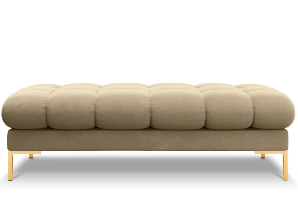 Elegantní lavice Micadoni Mamaia zaujme na první pohled svým nadýchaným vzhledem. Velmi příjemné sametové čalounění a zlatá podnož vytváří kontrast, který interiéru dodá elegantní vzhled a nádech luxusu. Díky zajímavému prošívání vzniká jemný design, který do vašeho domova vnese lehkost a styl. Nechte se obklopit komfortem ve společnosti produktů Mamaia.