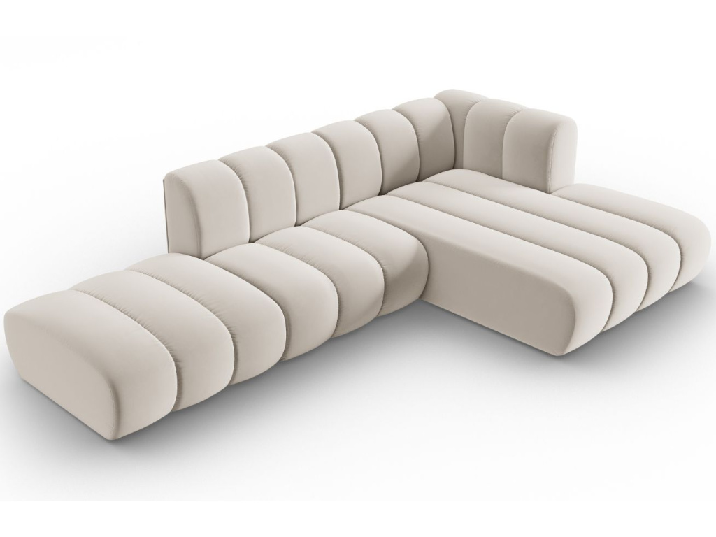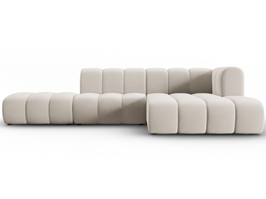 Rohová pětimístná pohovka Lupine vyzařuje elegancí a vybízí k odpočinku, konverzaci a užívání si bezkonkurenčního pohodlí. Design sezení se vyznačuje futuristickým a zakřiveným tvarem, který je čalouněný sametovou látkou. Krásná a příjemná tkanina s decentním leskem vykazuje vysokou pevnost a odolnost proti opotřebení. Navíc obsahuje ochranou vrstvu, která zabraňuje pronikání kapalin do vnitřního materiálu sezení. Kolekce Lupine zahrnuje podnožky a několik variant pohovek, které jsou dostupné v různých barevných provedeních. Díky tomu si můžete vytvořit jedinečnou konfiguraci sezení, která se stane ústředním bodem vašeho obývacího pokoje nebo společenské místnosti.