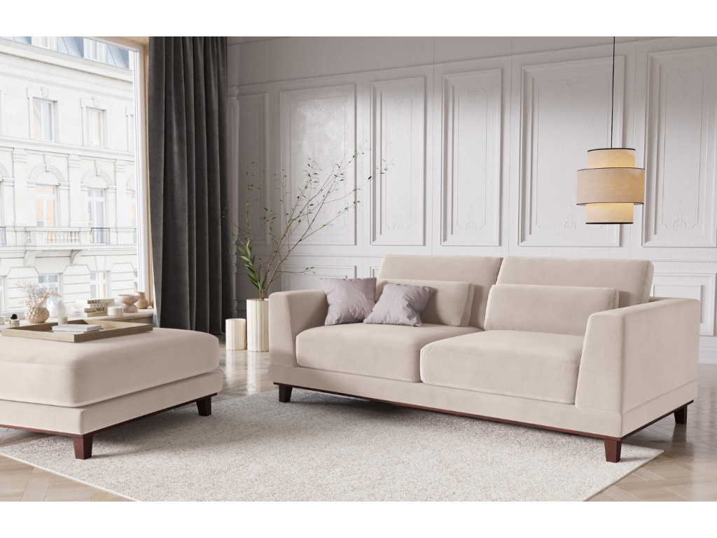 Máte už obývací pokoj vybavený, ale stále vám tam něco chybí? Zkuste podnožku Leon od značky Windsor & Co, která se nese v minimalistickém, ale elegantním duchu. O vaše pohodlí se postará příjemné sametové čalounění v béžovém provedení, které vás doslova pohltí. Tkanina je velmi odolná proti oděru, čímž zaručí dlouhodobé používání bez známek opotřebení. Leon poslouží jako podnožka pro vaše unavené nohy nebo jako další možnost sezení pro rodinu či přátelé. Atraktivní design s nádechem luxusu a klasiky jsou přesné známky podnožky Leon. Váš interiér může být dokonale sladěný – série Leon nabízí také křesla či pohovky, a to v několika barvách. Odpočiňte si a relaxujte ve stylu!